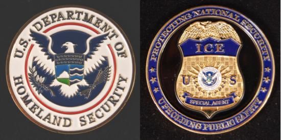 ICE coin - 1.75in in diameter and 22kt gold plated solid bronze. There is the ICE Seal with their motto on the front and the Special Agent Badge in 3D on the back in exact detail. MWF1934