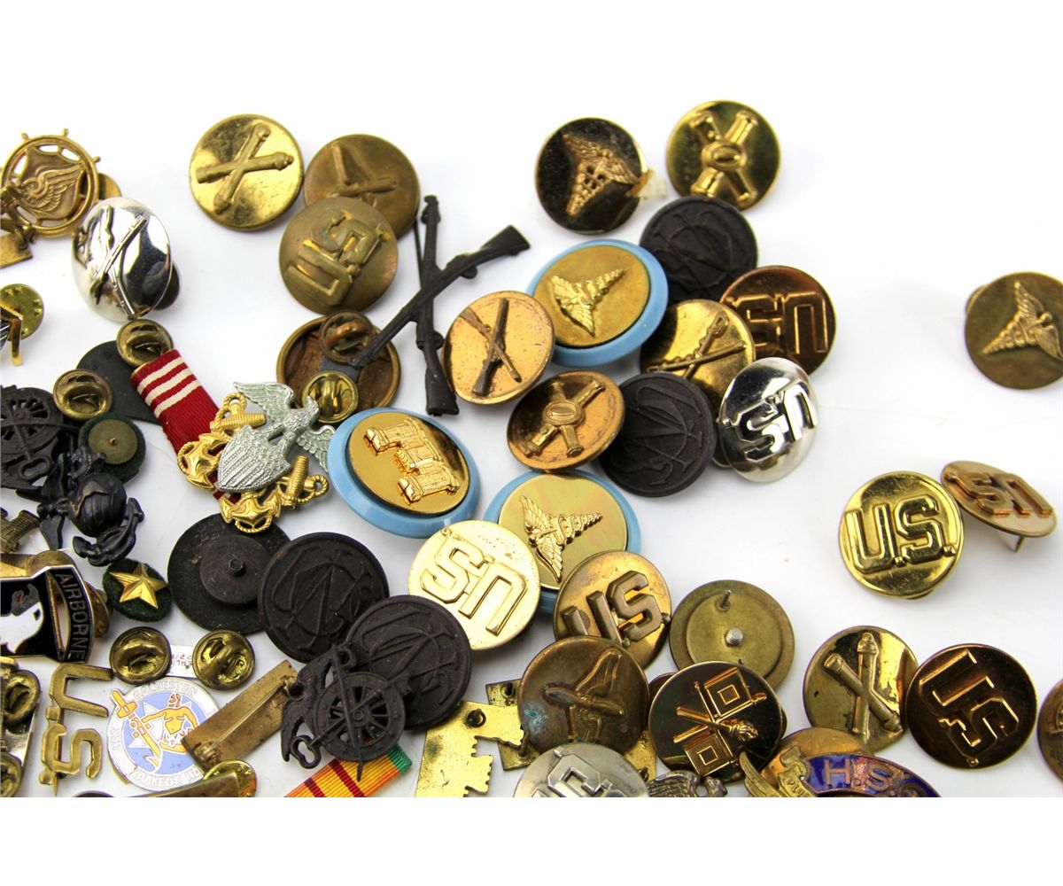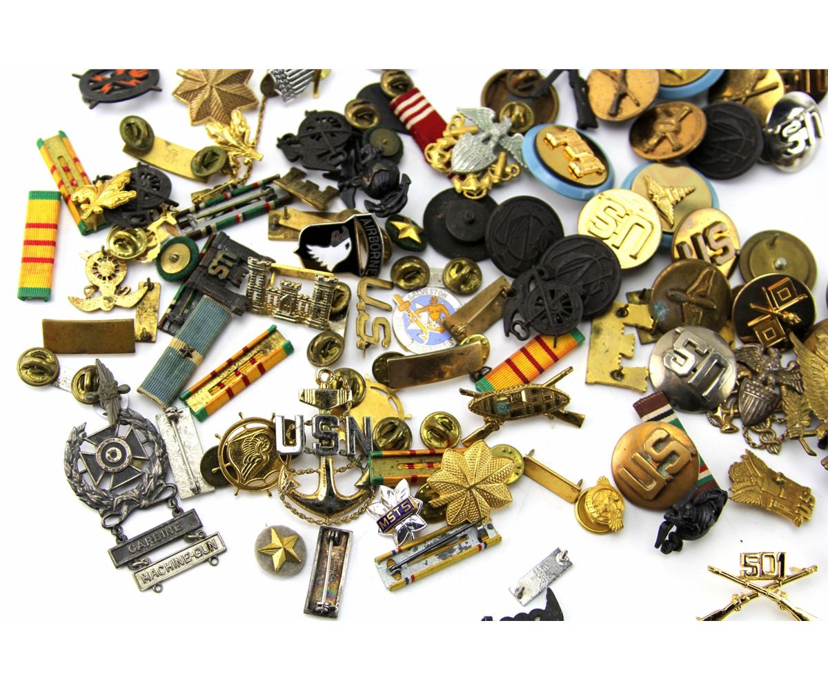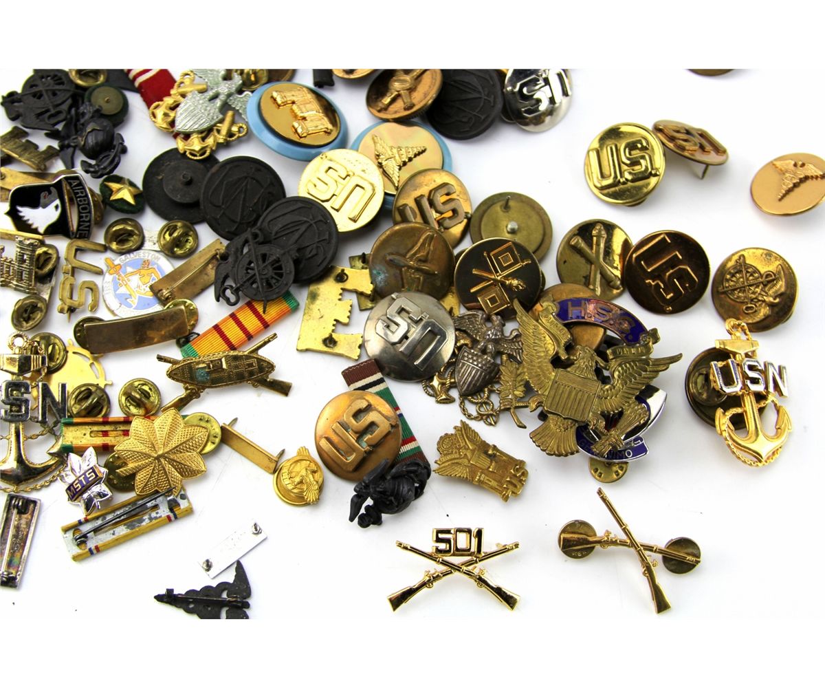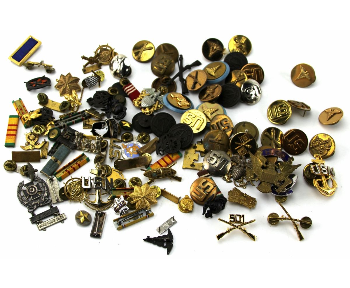 US INSIGNIA COLLECTION Bars, badges, pins, and tabs including sterling and gold filled. Over 100 pieces. Country: US Condition: Good.