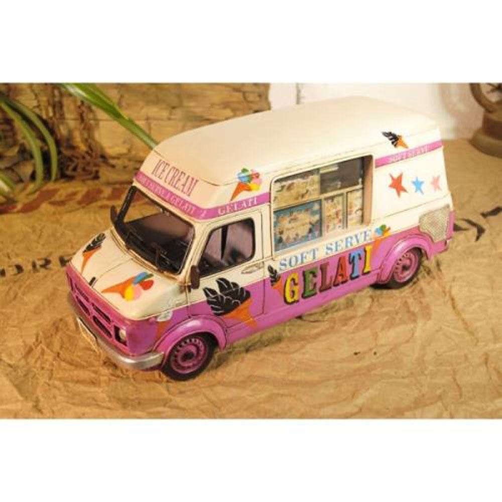 Beautifully handmade and so each piece is a unique collectible and show piece for your home. Decoration parts comes with stickers to match your scene, Plastic die cast metal, Ultra precision design with some moving parts where applicable, Decoration parts decals accurately reproduced. Decorate for any table, desk, or shelf in sporty fashion with Our Rustic Gelati Ice cream truck Sculpture. Featuring a rustic iron frame, this charming vintage Classic Car includes a fine detail’s. The silver and copper metal seat and handlebars are finished in natural colors. Size: 6X12X6 Inches. Weight: 10 LBS.
