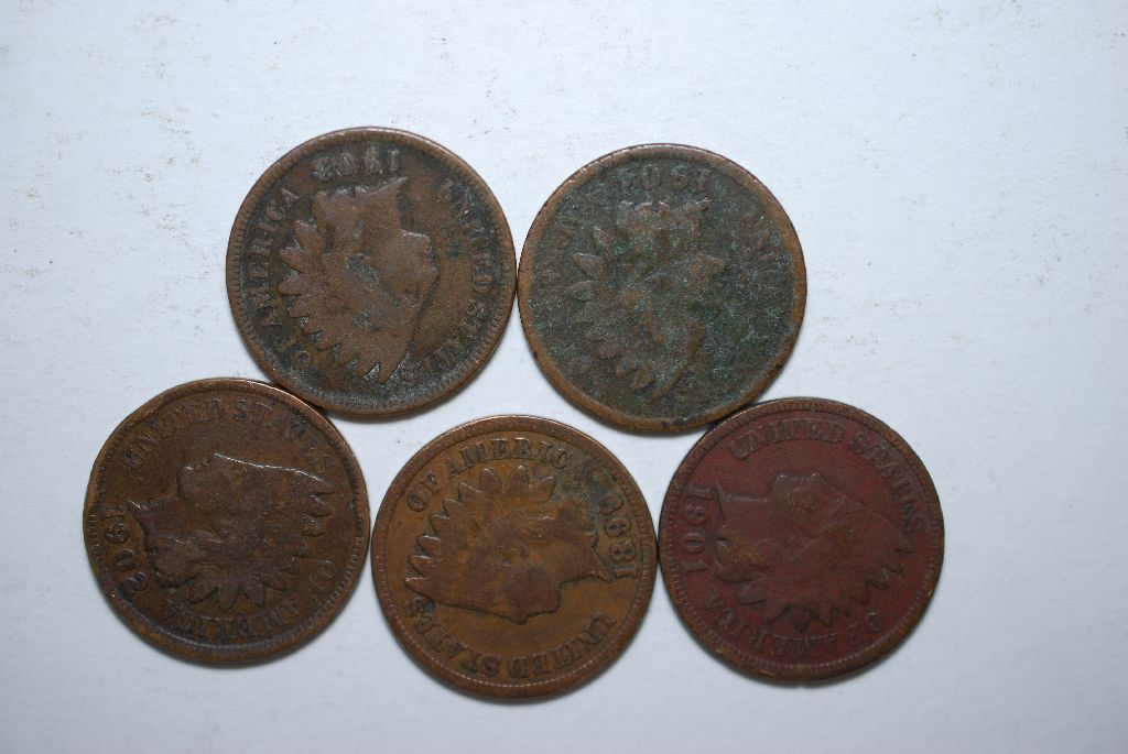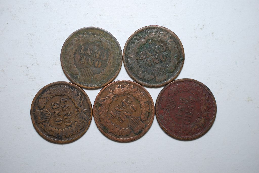 US Indian Head One Cent; Various Dates & Conditions; Lot of 5; EST. $5-10