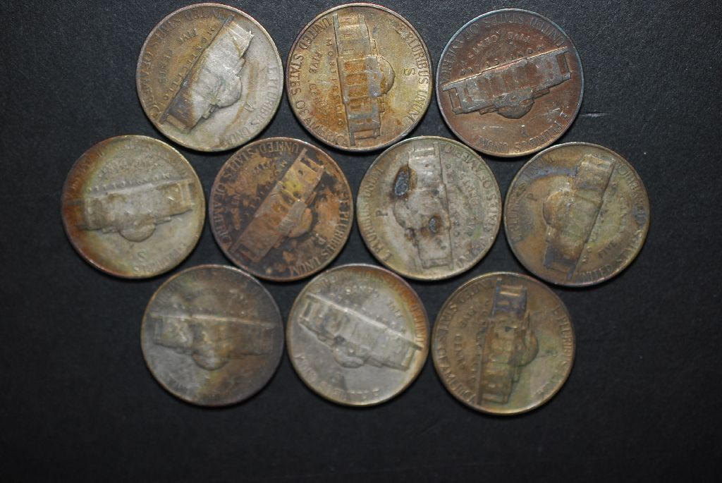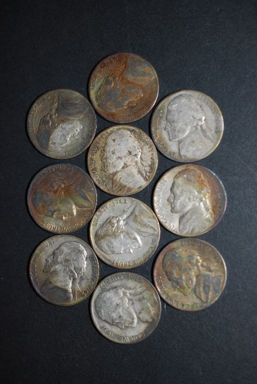 US Jefferson Wartime Silver Nickels; Various Dates & Conditions; Lot of 10; EST. $20-30