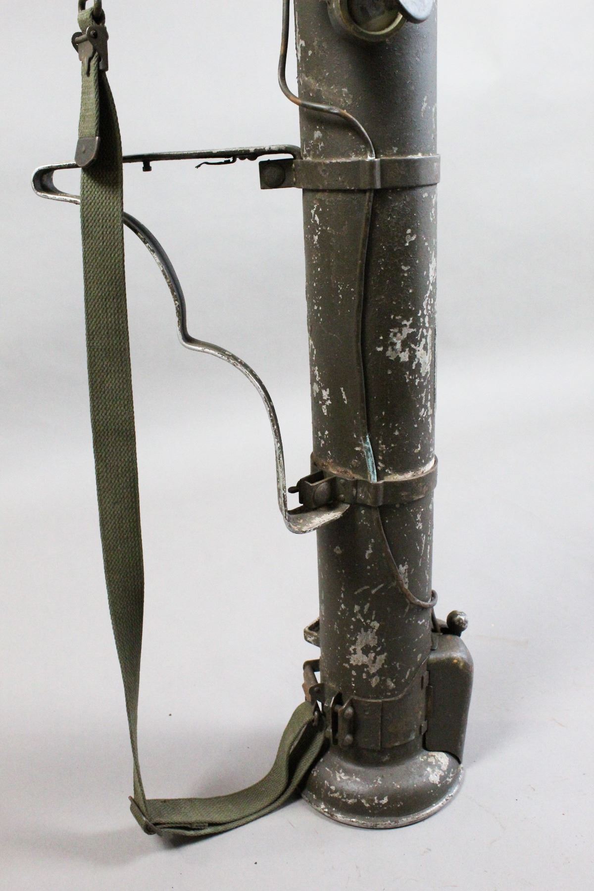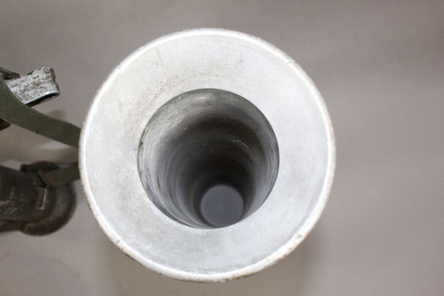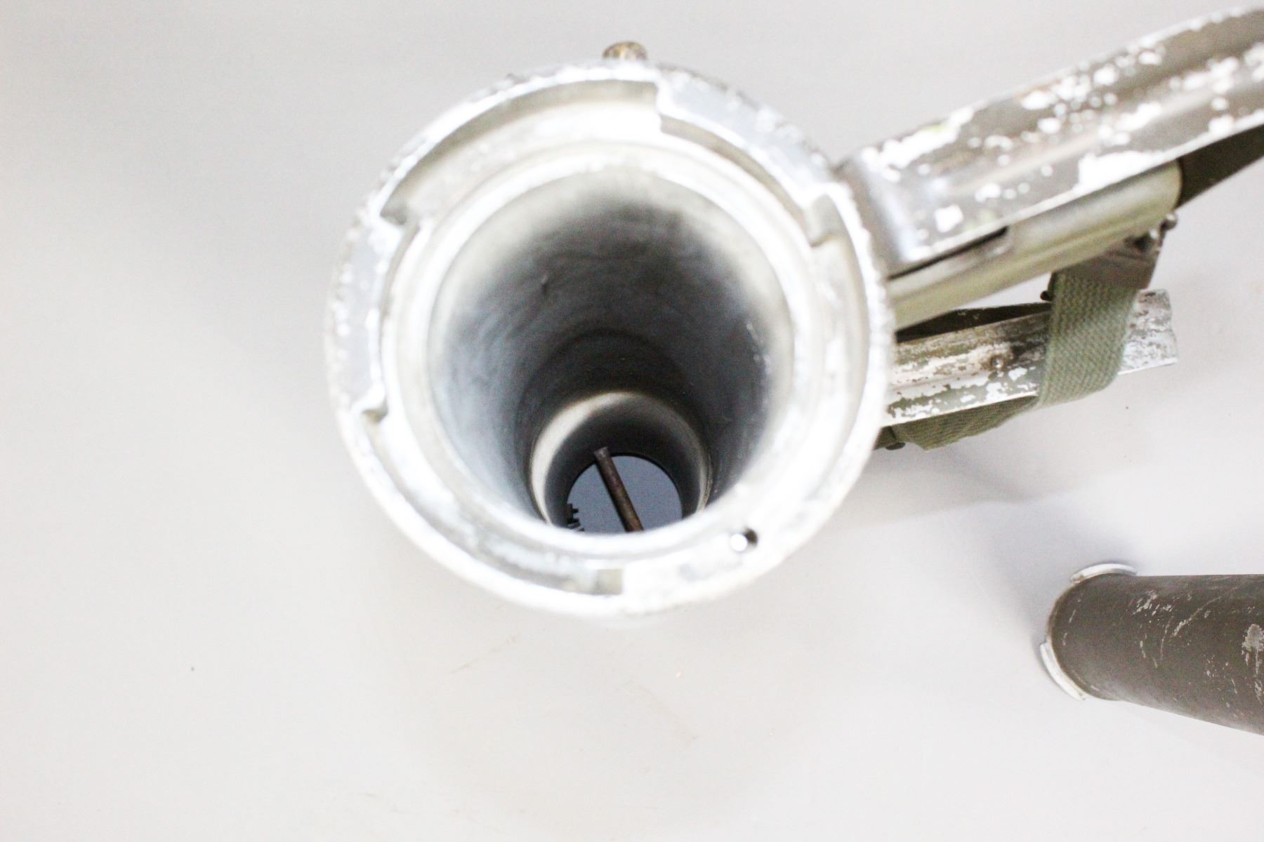 US M20 Super Bazooka. The M20 Super Bazooka was an improved version of the M9 Bazooka that fired a larger 3.5 inch diameter rocket. This larger rocket could penetrate up to 11 inches of steel armor, a much greater improvement than the older Bazooka's 5 inches of penetration. The Super Bazooka faced off against Russian T-34 tanks and entrenched defenses in the Korean War, and was used to great effect against them. The M20 would be replaced by the M72 LAW during the Vietnam War. This M20 Super Bazooka is a two piece construction like they all were and weighs around 13 pounds. This M20 comes with the standard optical sight on the left side of the launcher. The lenses on the sight are dirty and could use a good cleaning. The olive drab finish is worn around the center of the Super Bazooka and on the shoulder rest. There are some markings on the top of the tube that read "Launcher Rocket 3.5 IN C, A0827" and "R.F.I 1963". This M20 is a demilled example with a large cutout on the right side and a bar spanning the inside diameter of the launcher welded in place. Comes with sling. Good condition and an awesome piece of US firepower.