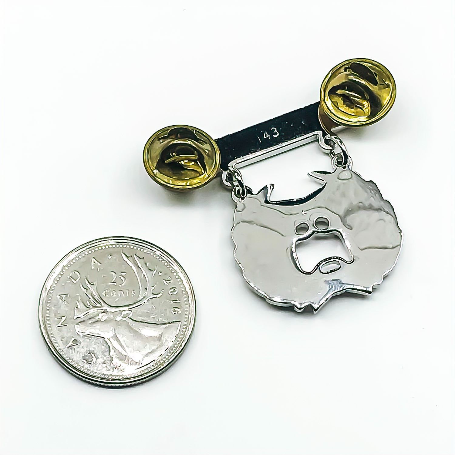 #9038 - 143 ON BACK. MILITARY PIN BADGE. QUARTER NOT INCLUDED***ITEM(S) LOCATED IN LETHBRIDGE ALBERTA. ALL ITEMS IN THIS AUCTION QUALIFY FOR OUR FREE TRANSPORT TO EDMONTON SERVICE. WORLDWIDE SHIPPING AVAILABLE