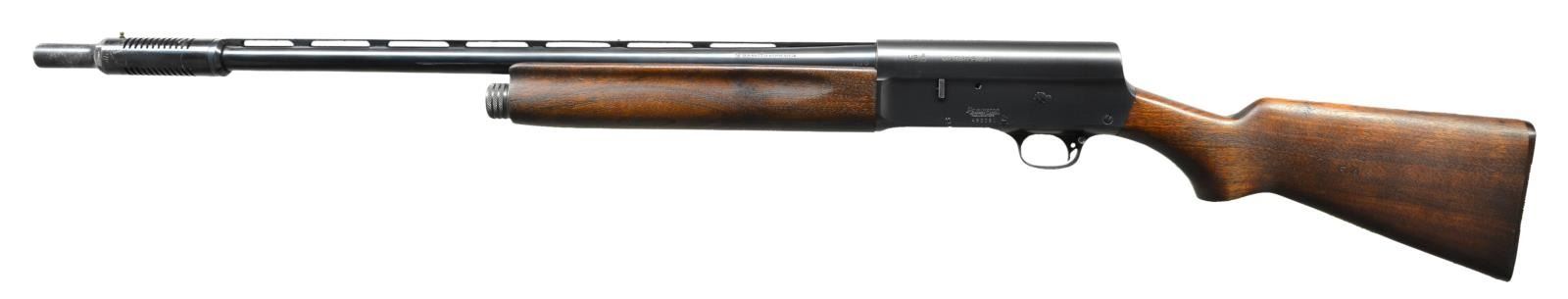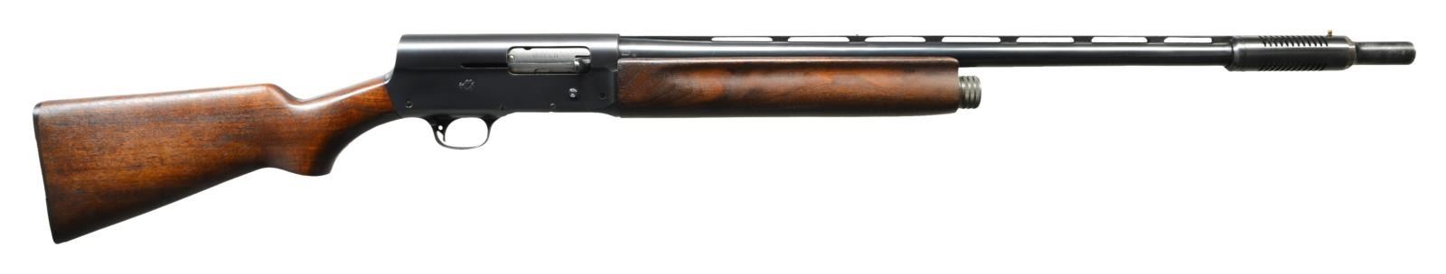 Cal. 12. ga., 2 3/4". S# 492091. Bbl. 25" VR w/ Cutts compensator & Lyman full choke. Left side of receiver marked w/ "U.S.", flaming bomb & "MILITARY FINISH". Walnut pistol grip stock w/ ordnance wheel cartouche and "FJA" stamp on left side of butt. Ribbed Remington buttplate. UNATTACHED ACCESSORIES: 5 spare Lyman chokes for the Cutts compensator. 2 Chokes marked "M.C. 725", one marked "755", one unmarked & one marked "12 GA SPR". CONDITION: stock set appears refinished w/ scattered handling marks. Metal retains 95% quality reblue w/ some high edge wear on bbl. Very good bore. (22-2548/MJC). CURIO. $200-400.