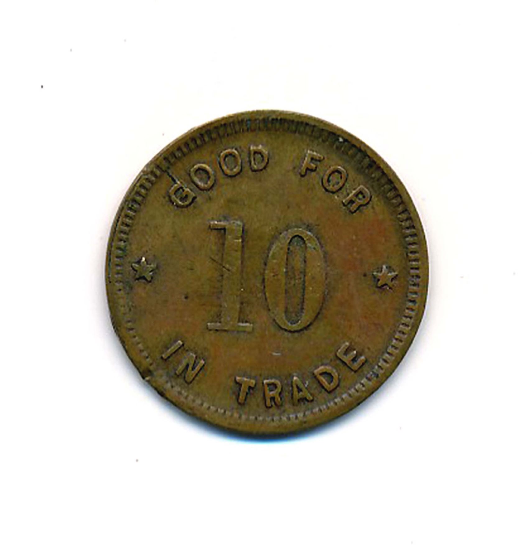 U.S.A. BASE HOSPITAL EXCHANGE camp merritt, n.j. w/star and ovals above and below EXCHANGE. The reverse has GOOD FOR 10 IN TRADE w/ star left and right of 10. Die break in G of GOOD and a rim ding at 7:00 O'Clock. RARE
