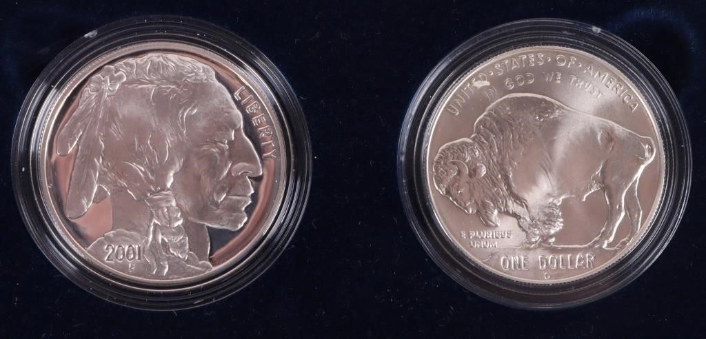 U.S. Mint 2001 Buffalo Head Silver Dollar Set, featuring a stunning proof silver dollar commemorating the classic Buffalo Nickel design. This set includes the original packaging