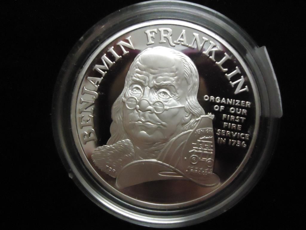 US MINT BEN FRANKLIN FIREMAN SILVER PF MEDAL