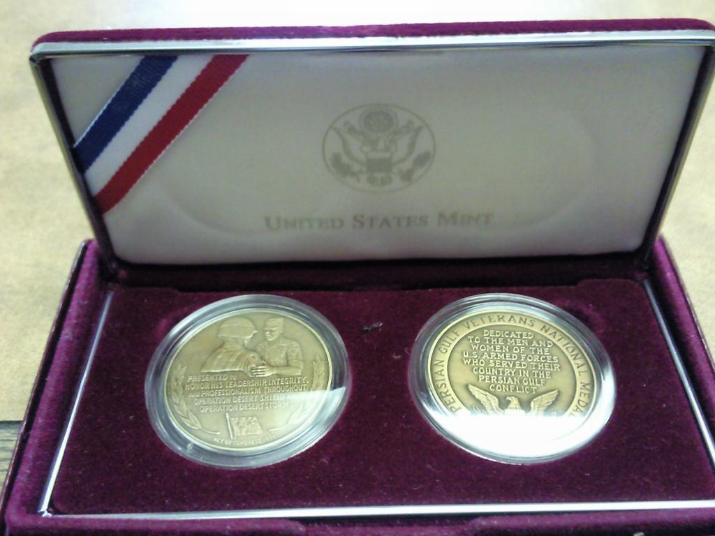 ORIGINAL MINT PACKAGING, OFFICIAL MEDALS OF THE UNITED STATES MINT, POWELL MEDAL AND PERSIAN GULF VETERANS MEDAL