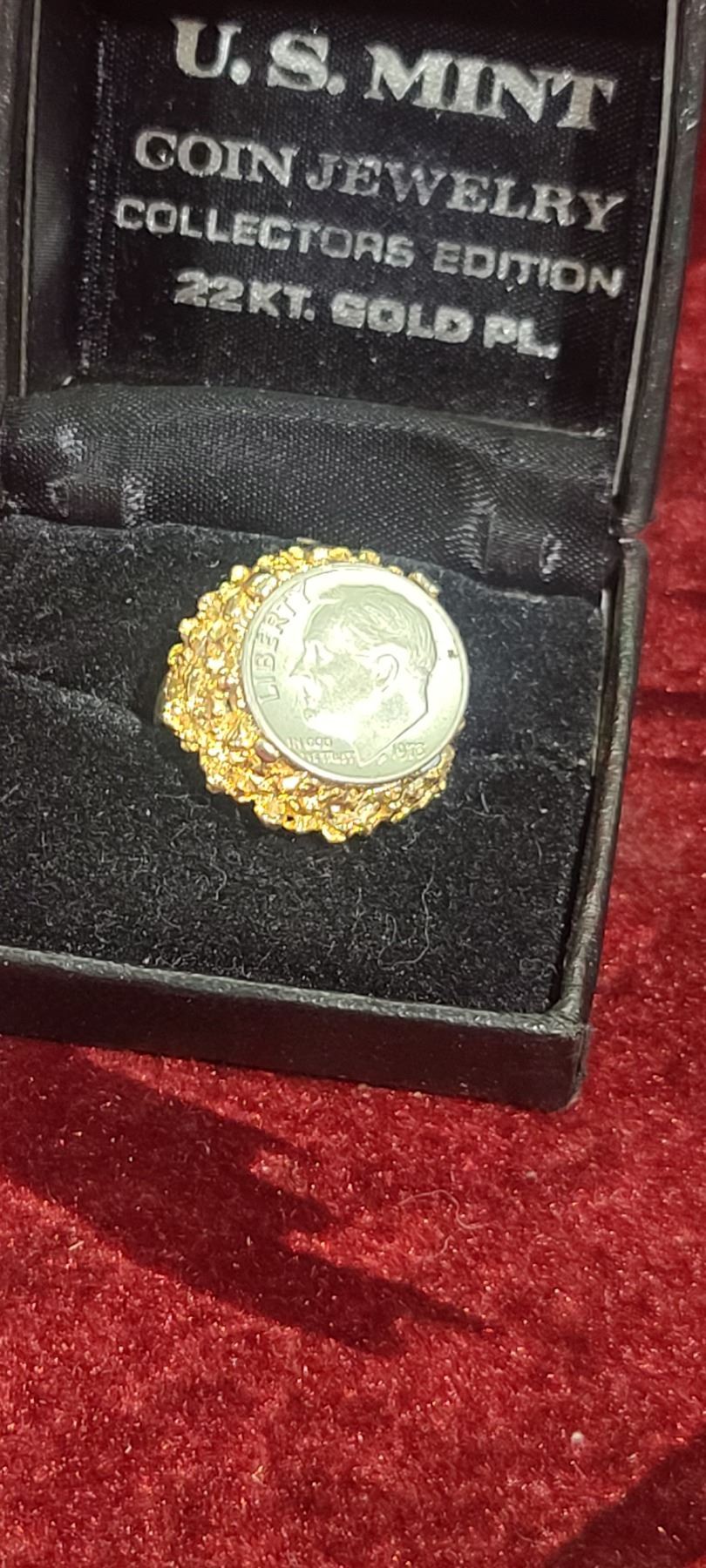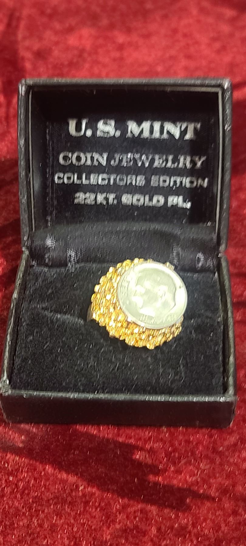 US MINT JEWELLERY - 24KT PLATED DIME RING