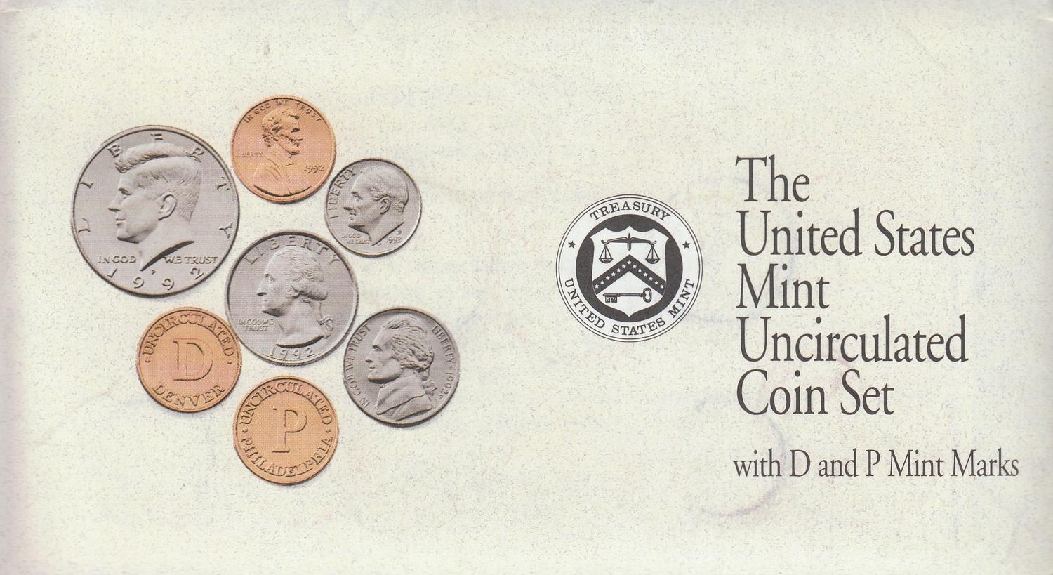 US MINT SET D AND P MINT MARKS 1992