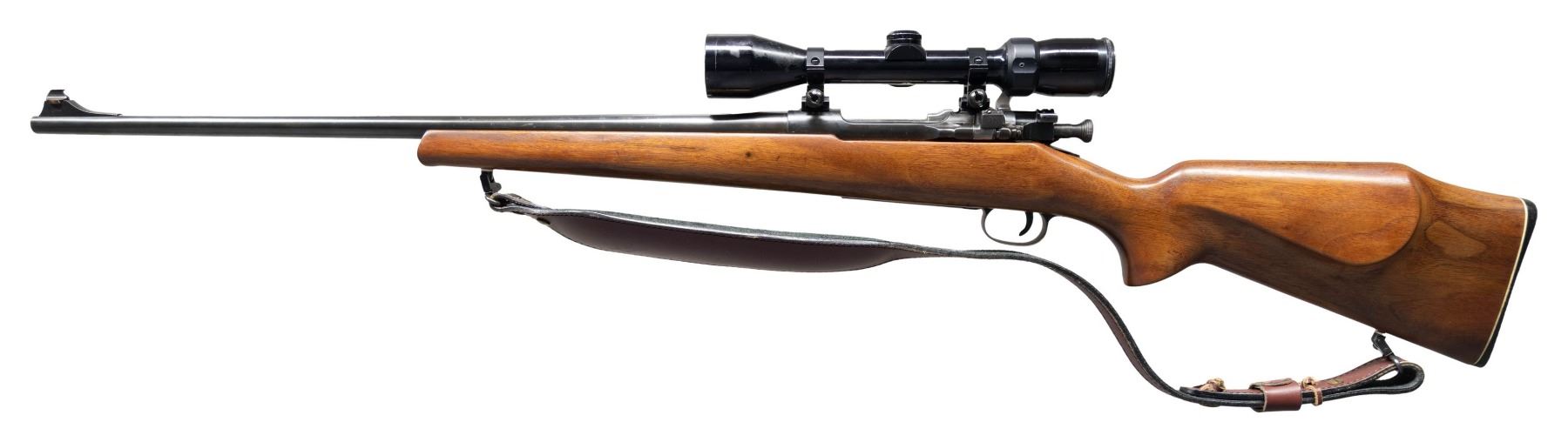 Cal.30-06. S# 545647. Bbl. 24". The rifle has been sporterized using a Model 1903 receiver produced in 1913. The barrel now has a bead front sight mounted in a Lyman ramp. There is no rear sight fitted although the bridge has been drilled for a receiver sight. The bright polished bolt has a replacement sporting handle. A Bushnell 3-9X40 scope is carried on Weaver bases. Duplex reticle. Walnut Bishop sporter stock with a monte carlo comb and right hand cheekpiece. QD swivels with a padded brown leather carrying strap. CONDITION: stock has light wear and scattered handling marks. Action is at least partly glass bedded which leaves the rear of the receiver not seated fully into stock. Metal retains most of its professional reblue except that the milled trigger guard assembly is turning grey. (25-4842/RW). MODERN. $200-300.