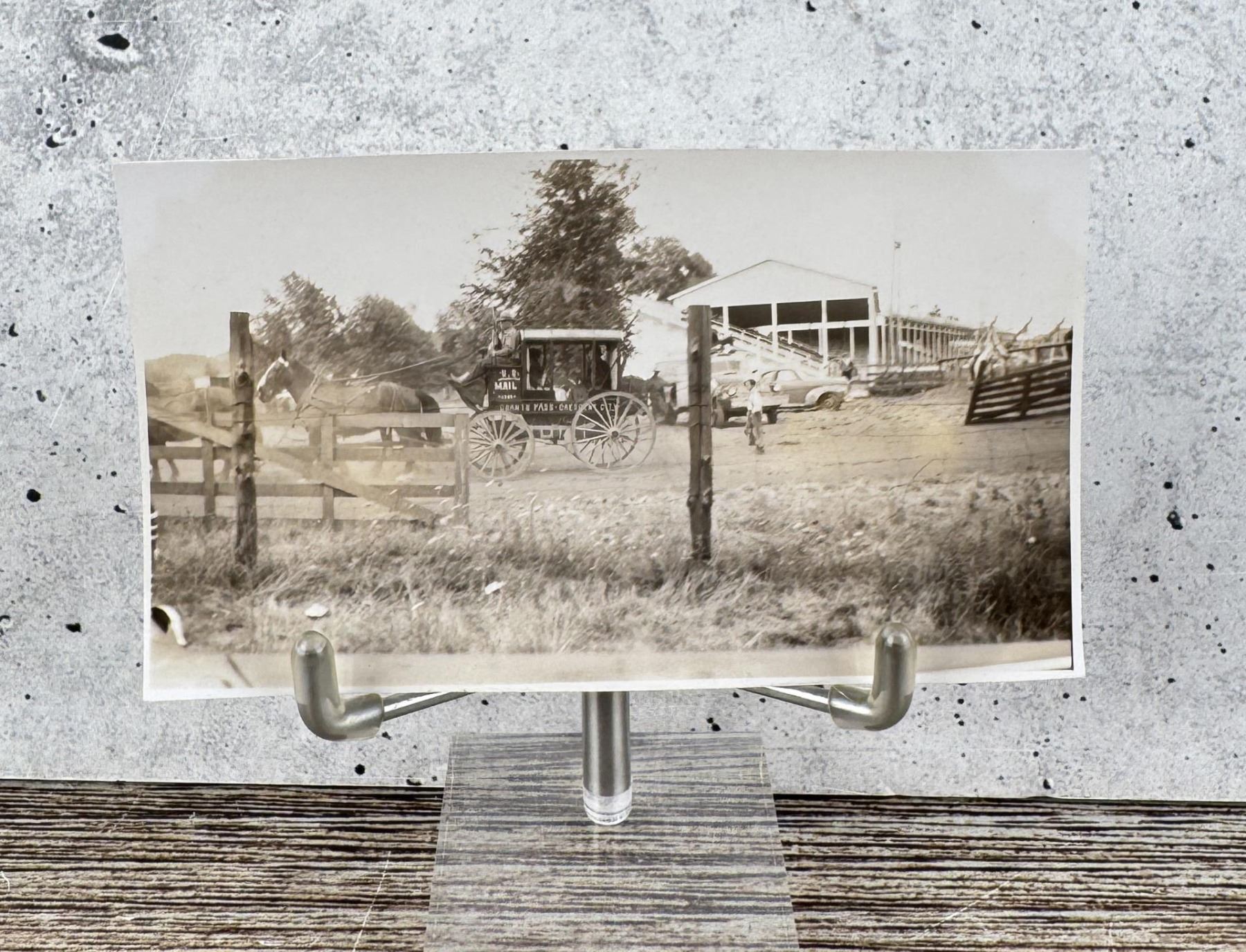 Side of stagecoach says Grant's Pass. 2 1/2" by 4 1/4"