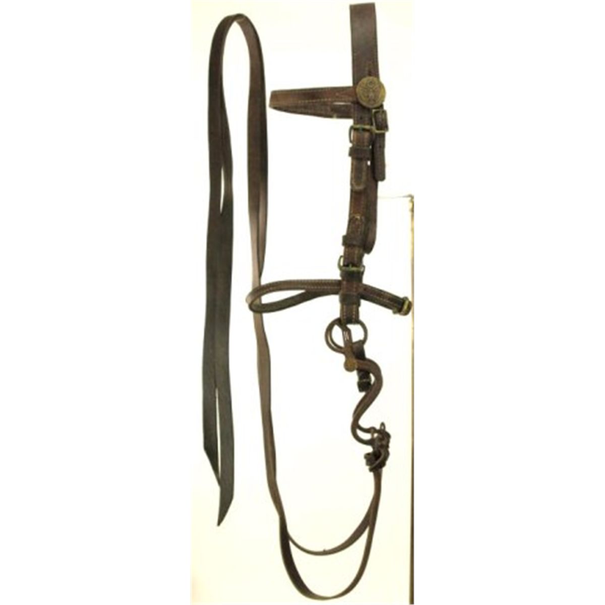 US Military bit and headstall bit stamped 614 with US brass medallions. Headstall very good condition with brass eagle and shield rosettes stamped US.