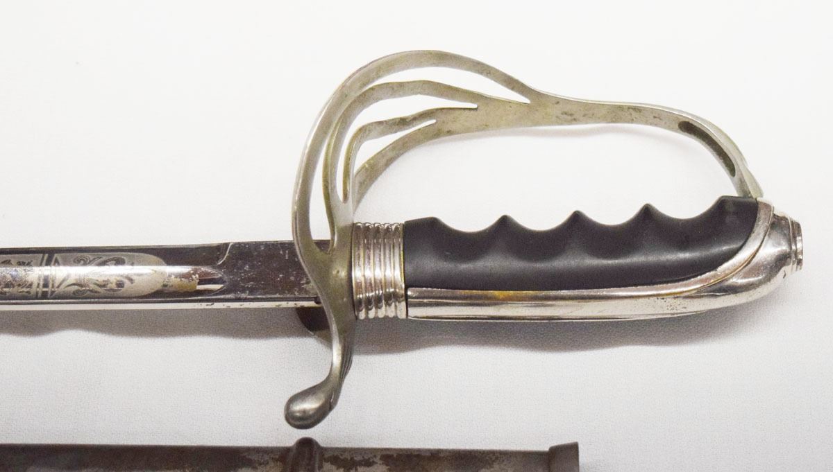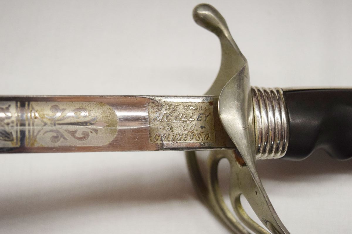 US Military sword, marked McLilley Co., Ohio, 31" fancy etched blade, brass hilt