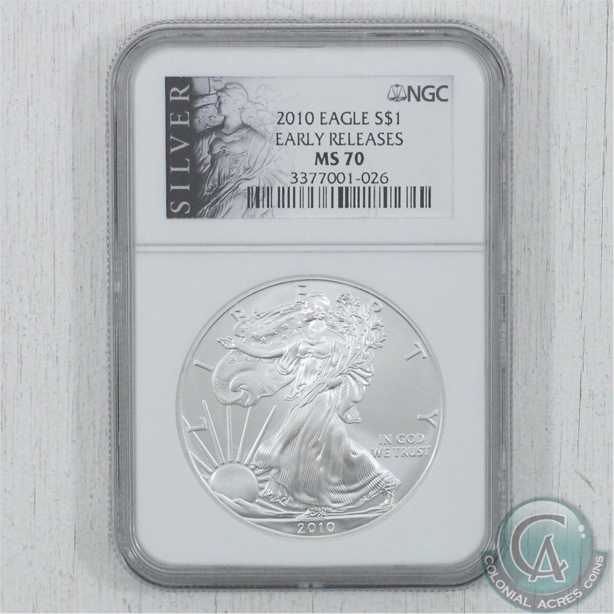 US Mint: 2010 United States $1 Silver Eagle 1oz Fine Silver NGC Certified MS-70 Early Releases (TAX Exempt)