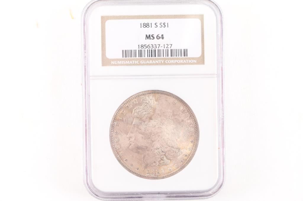 (1)1881 NGC grade of MS64. In NGC clear hard case.