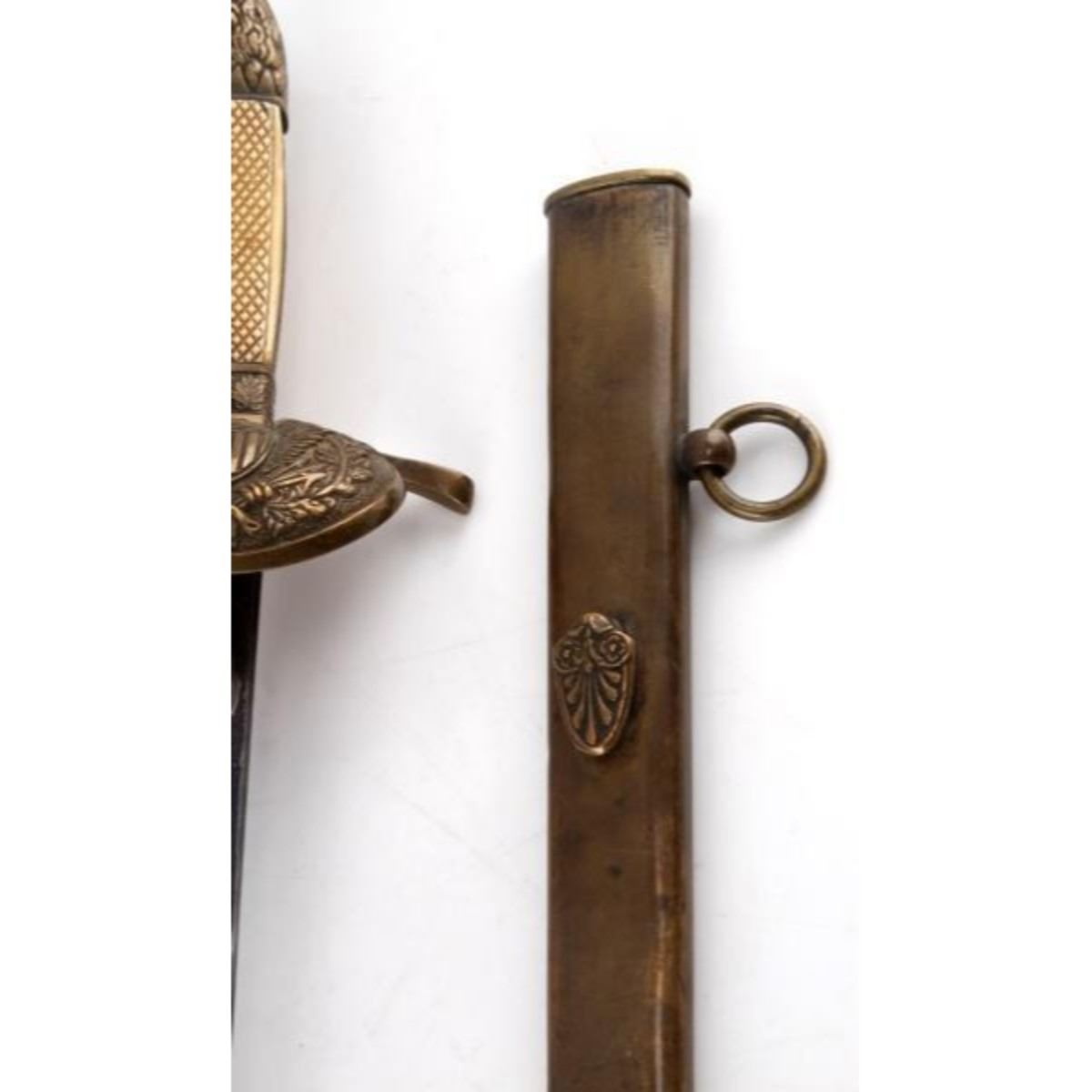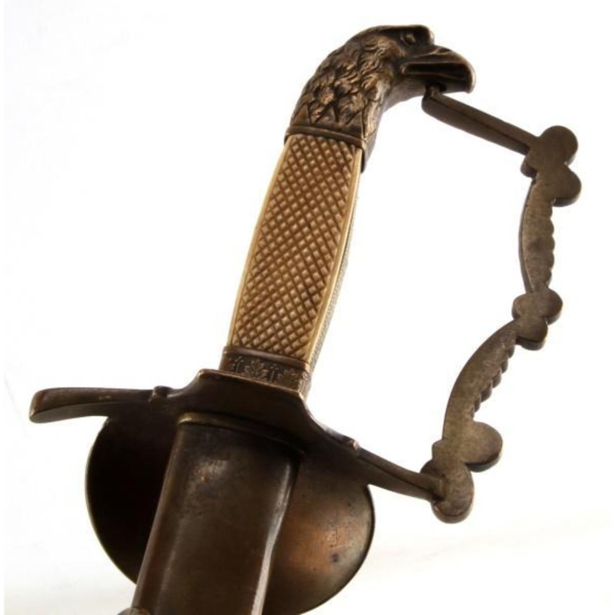 Sword of an Model 1821 US Infantry Officer's sword, with the eagle-head pommel. In very good condition, beautiful quillion , brass scabbard with small dent; overall both sword and scabbard are in very good condition. Blade displays no battle dings and has never been sharped since manufacture. Only traces of gold gild. Fabulous, historic, piece from old collection.