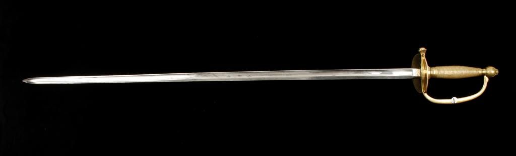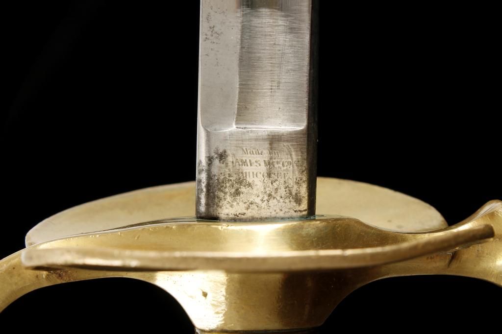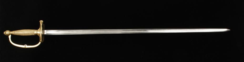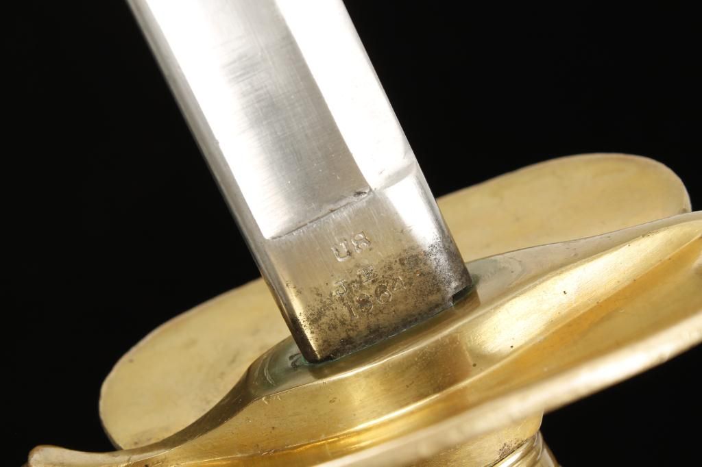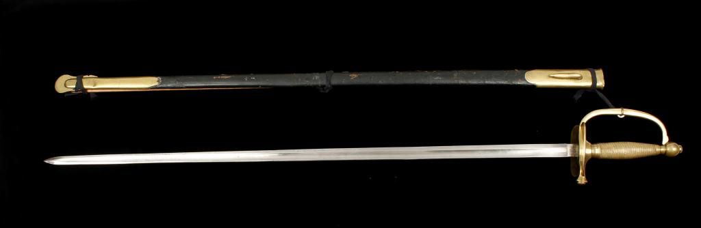 US Model 1840 non-commissioned officers sword with scabbard dated 1864 and manufacture marked by Ames. The sword is in very good plus to near fine condition with crisp handle and near mint blade showing its originalpolish. The scabbard is very good showing some cracks and small deteriorations and slight losses with a well done repair that is almost imperceptible. The sword shows a full series of inspection marks. Est.: $350 -$700