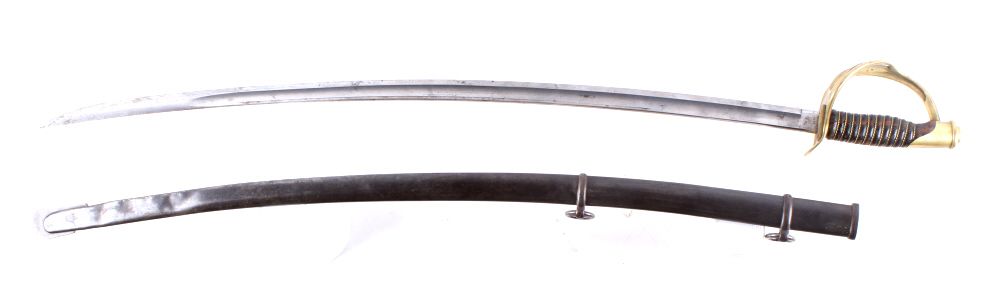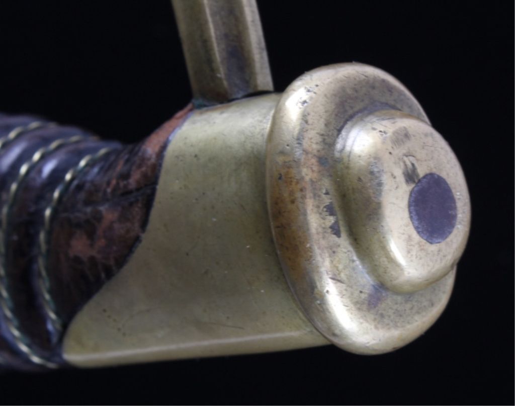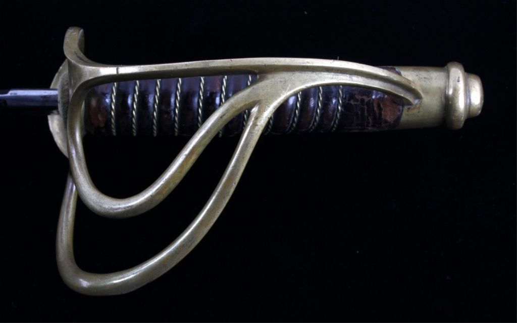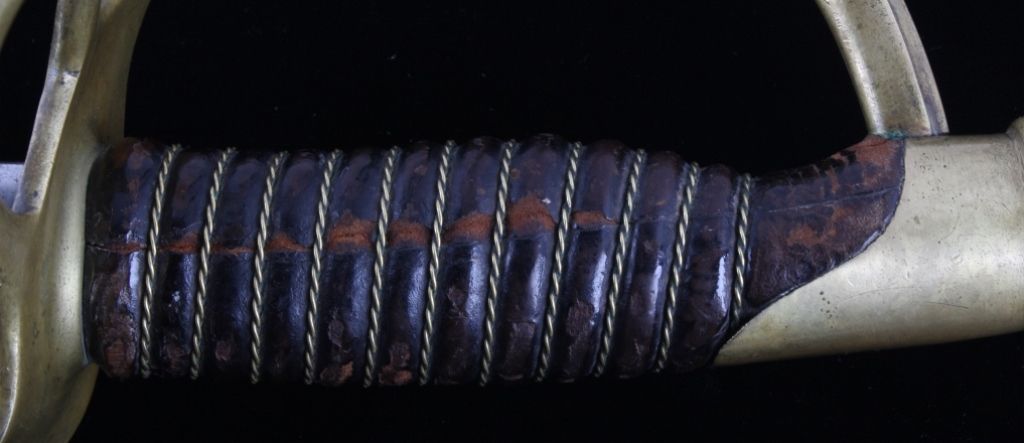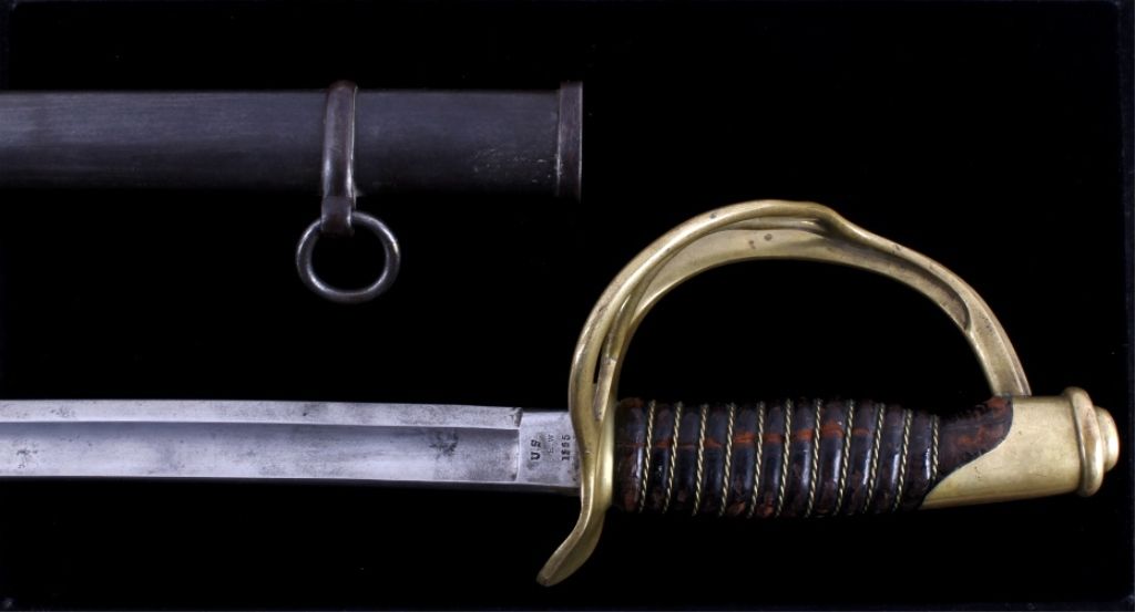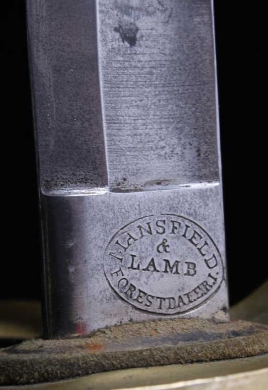 The piece is marked, "Mansfield & Lamb Forestdale R.I. U.S. C.E.W. 1865." This is a United States Model 1860 (otherwise known as the M1862) Cavalry Sword and Scabbard. The scabbard shows a dented end as it was stepped on by the horse. The sword was used from the 1862 and on. The sword or saber itself shows good condition with a very clean blade and good condition leather and wire wrapped handle. The brass is marked A17 XXXX.