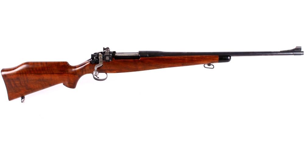 For bidding in this lot is a finely sporterized version of the US made Eddystone Enfield, chambered in .30-06. It is a bolt-action Mauser Style rifle, with some Lee-Enfield features to provide a more rapid fire. The need for additional small arms combined with a shortage of spare industrial capacity led the British government to contract with United States commercial arms manufacturers, Winchester, Remington and Eddystone (a subsidiary of Remington set up principally to manufacture the P14) to produce the P14 for the British before the US entered the war in 1917. This example features a fine adjustment rear peep sight, paired with a blade Redfield front sight, 5-round stripper fed magazine, sporterized deluxe walnut stock with cheek piece, contrasted by an exceptional 23" blue'd barrel, and polished bolt. The rifle is marked in numerous places, reading; "U.S. Model of 1917 Eddystone" on the receiver in front of the bolt, and a flaming bomb on the bolt handle. This rifle shows very-good condition, with only light handling marks to the deluxe walnut fixtures, and a fantastic blue'd finish. The rifle also shows a tight action, and a good bore, showing strong rifling with some darkness. Serial Number: 210374. This rifle Qualifies as a Curio & Relic Long Gun, and requires FFL Transfer or NICS Background Check.