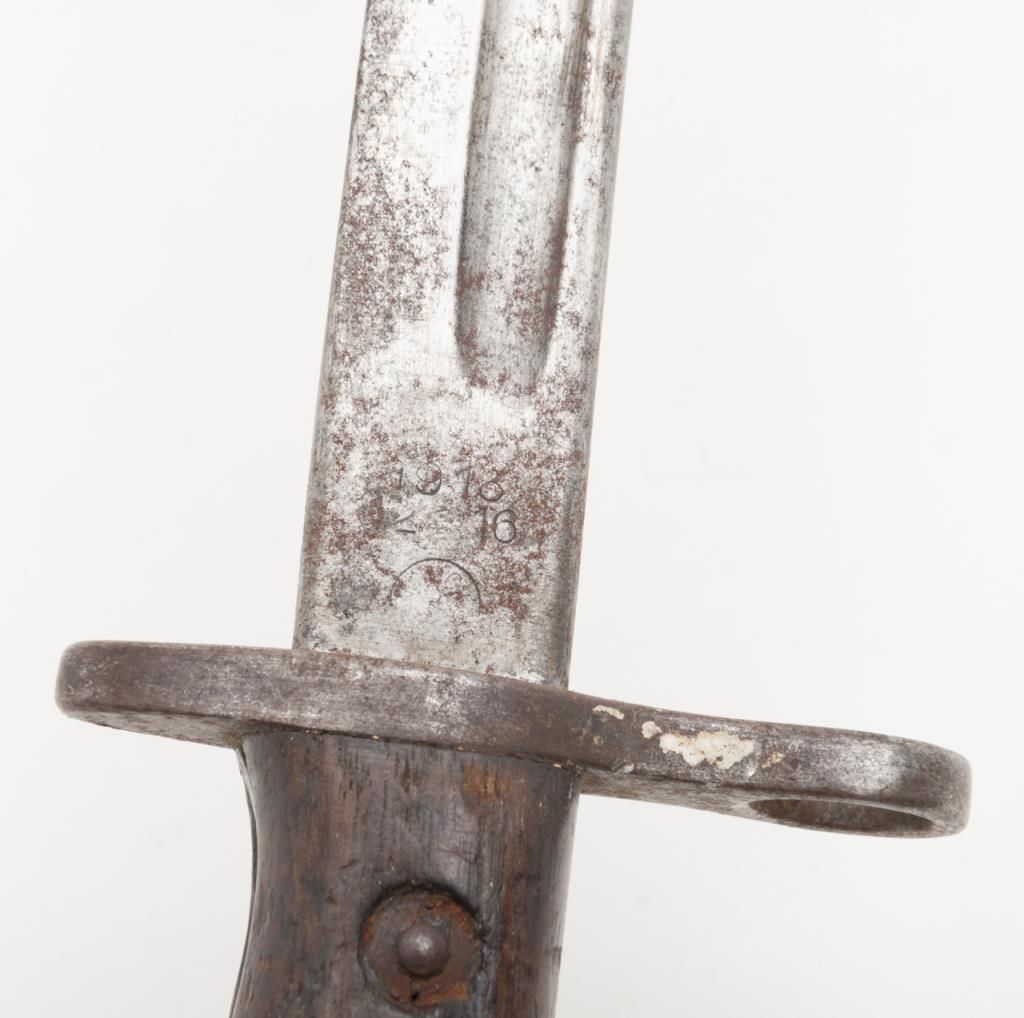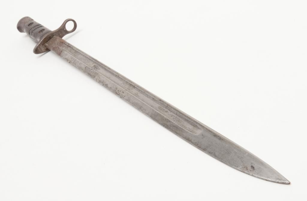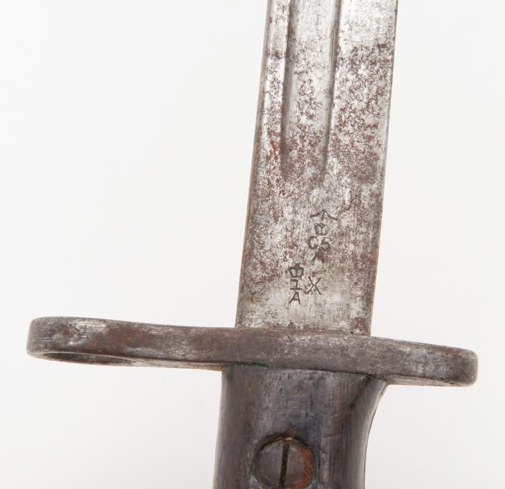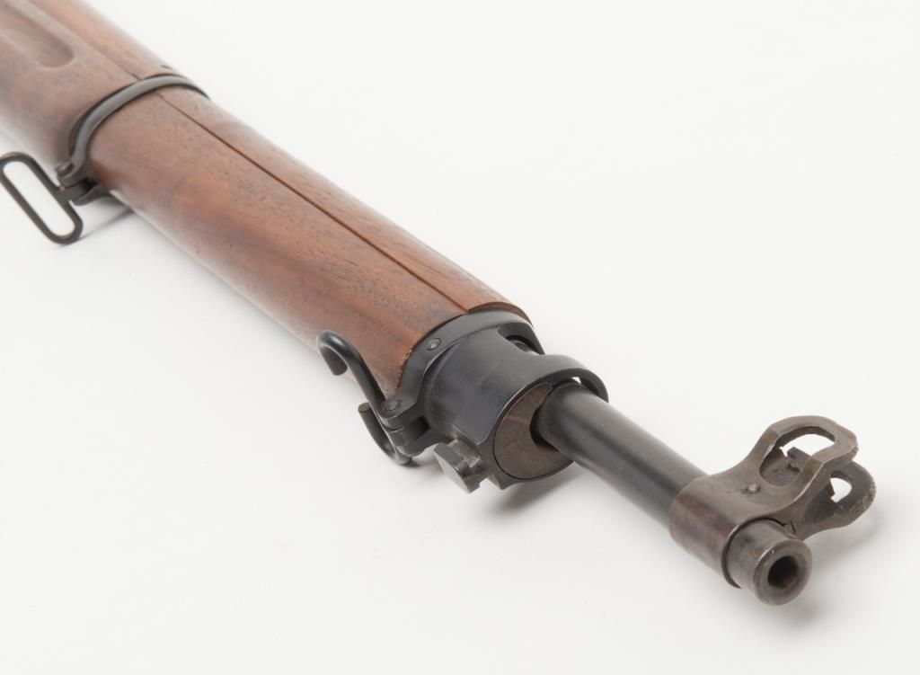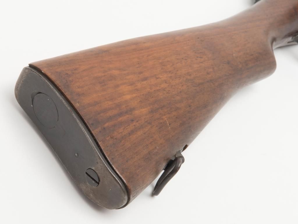 US Model 1917 bolt action by Eddystone, 30/06 caliber, Serial #428606. The rifle is in overall very good condition as re-finished. The rifle retains the majority of its military finish, with a “U.S.” marked action. The smooth wood stocksare in very good condition as re-finished with small mars and a “3W” cartouche behind the trigger guard. The rifle comes complete with a 23” sword bayonet and leather scabbard. The bore is good, the action crisp and markings legible on thisrifle. (C+R/PPT). Est. $250-$500.