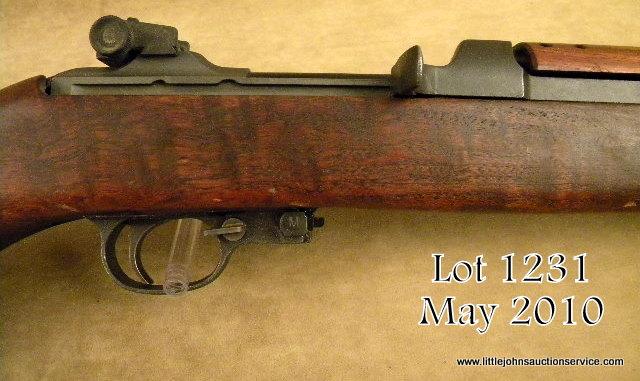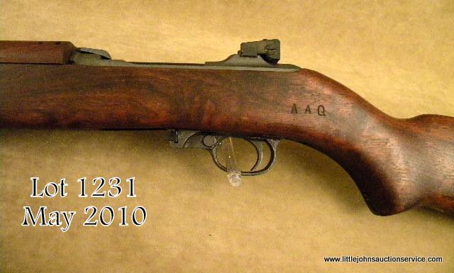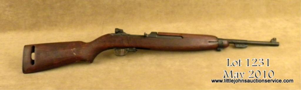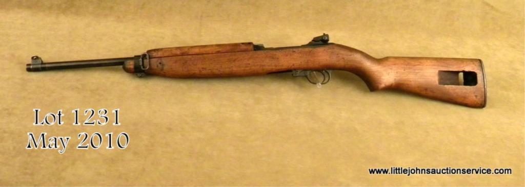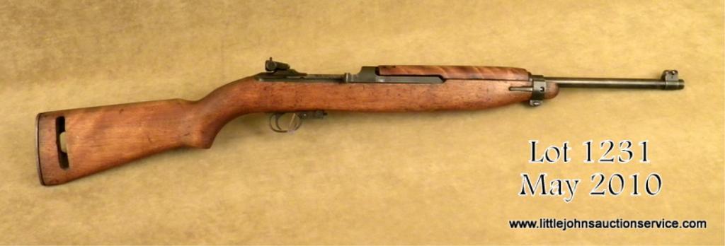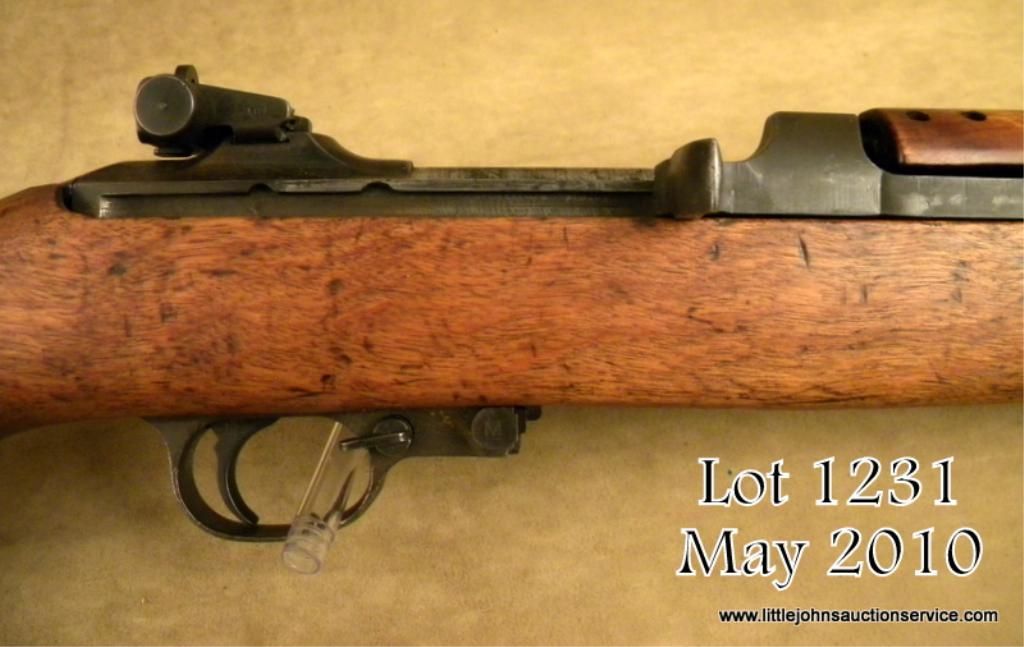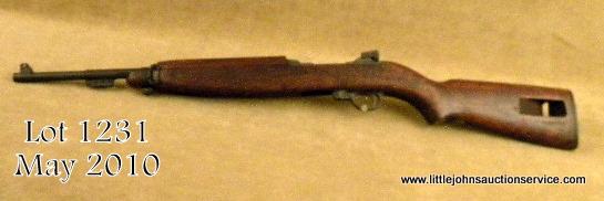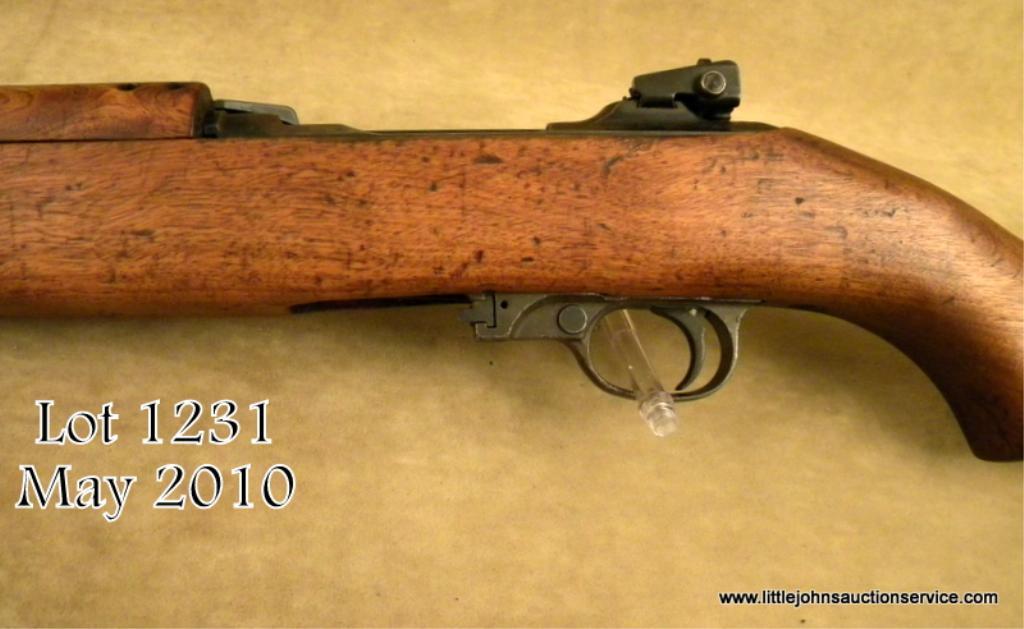US Model M1 30 caliber carbine by Winchester, #5761594 with W marked Winchester barrel; the metal surfaces are good with a mottled color; the rear sight is a later replacement; the stock is also an arsenal replacement type; the action good, the bore near excellent; no import marks. Est.: $450-$900.