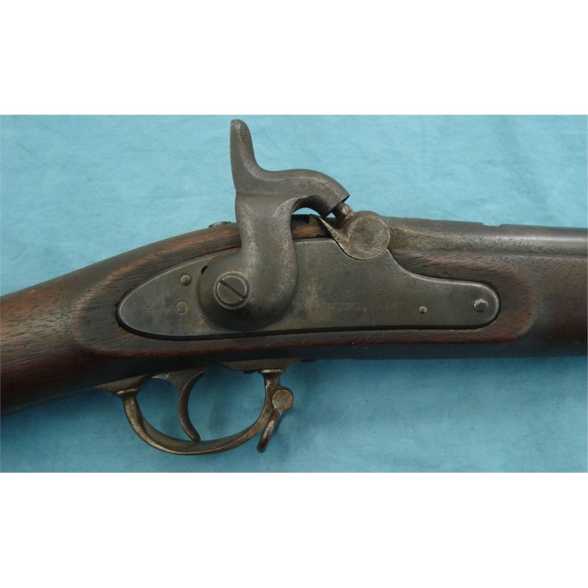 #NSN; Antique. Lock is marked "1863 L. G & Y Windsor VT" (Lamson Goodnou & Yale). Bbl shows proof marks, inspector initials & partial serial #. Stock is in very good condition & retains a light cartouche. Butt plate & nipple area are pitted. Hammer sear is broken. Otherwise Musket is in good condition.