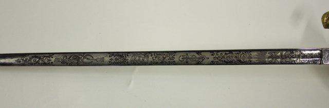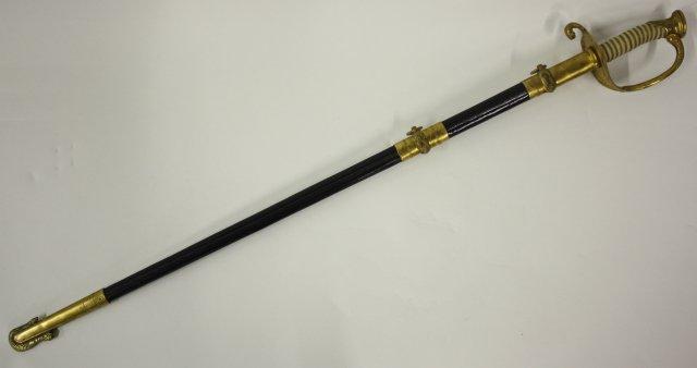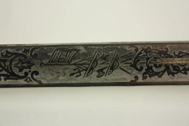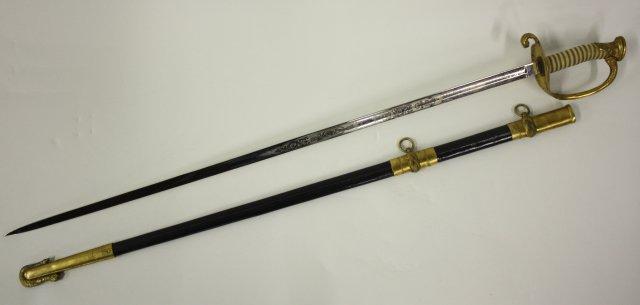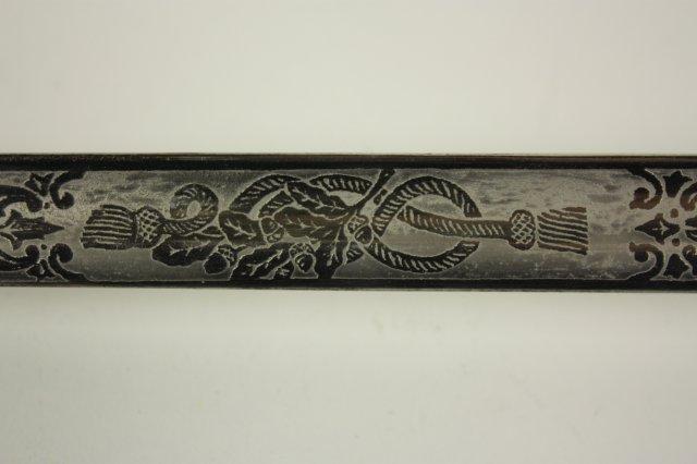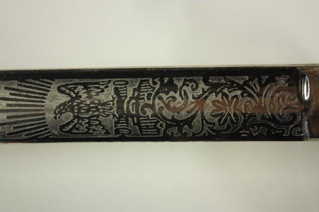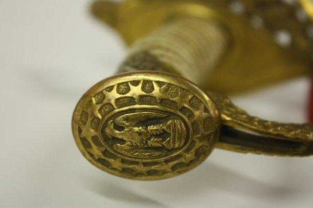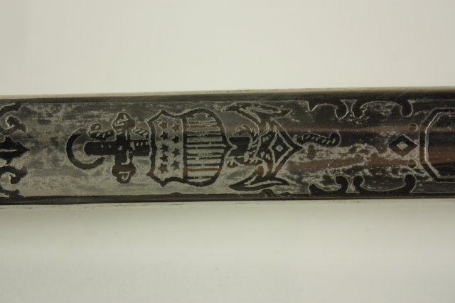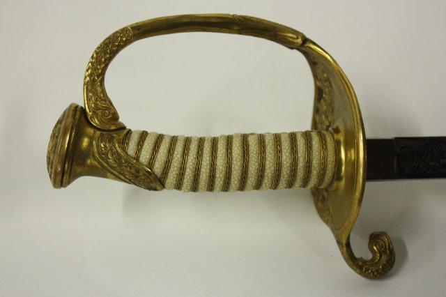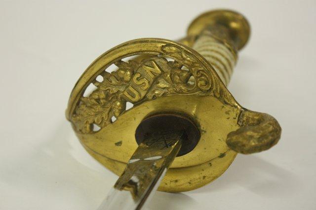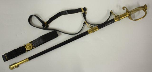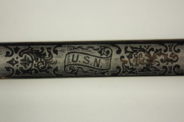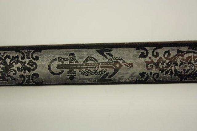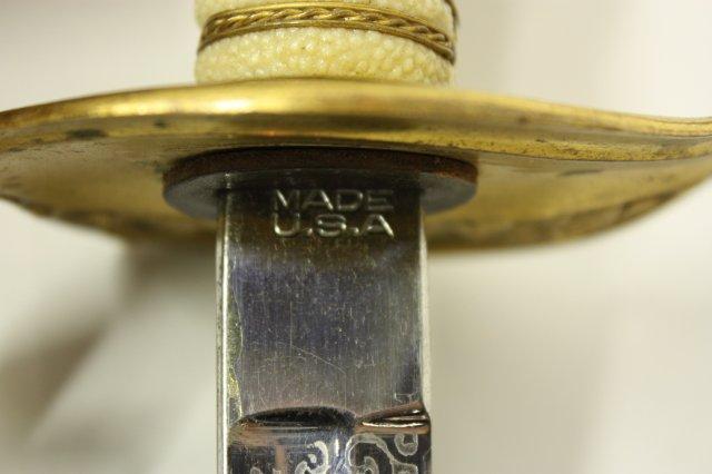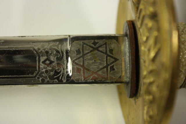 US Navy Officers sword with belt rig with cover - Early 20th c. Double sided etched blade with Star of David. Guard marked USN Presentation grade.