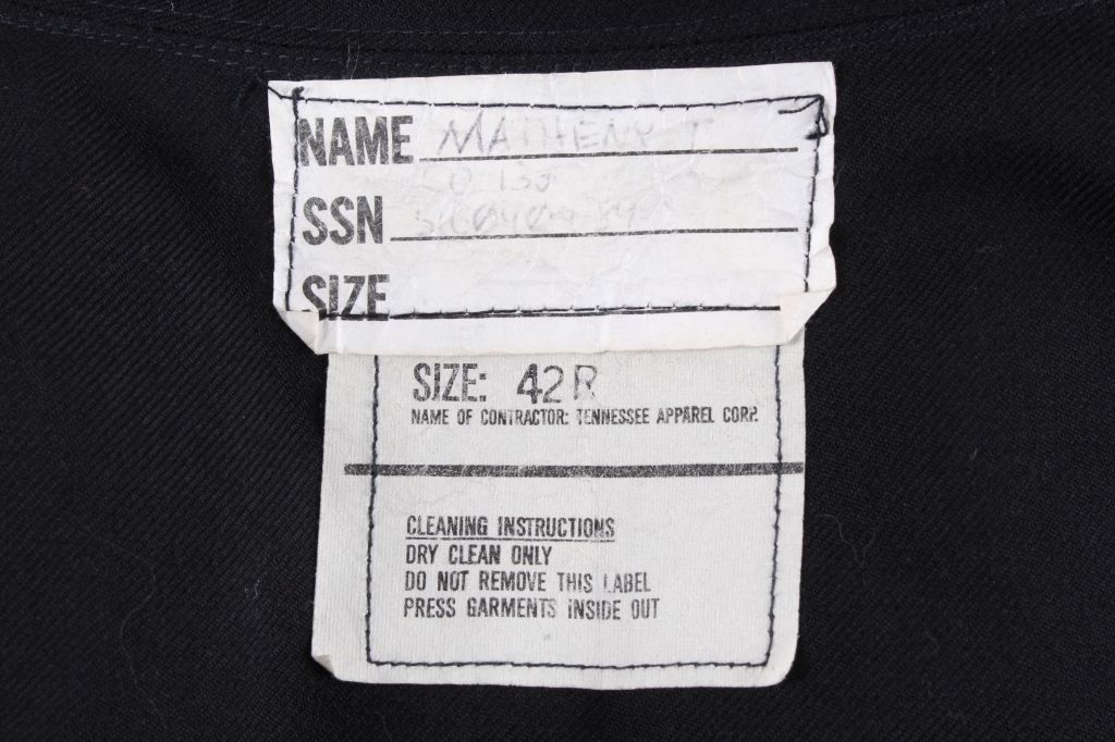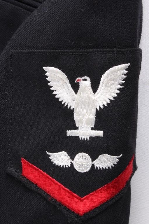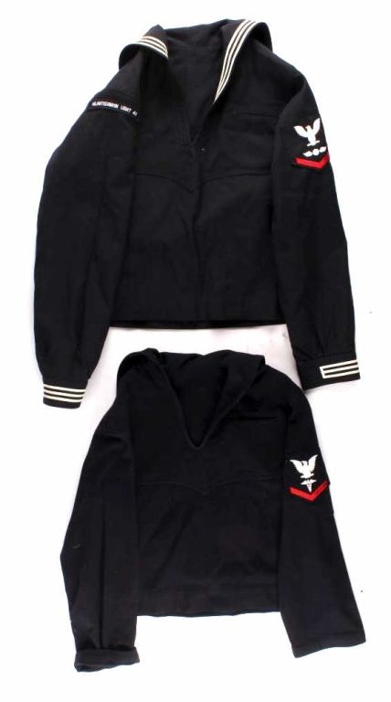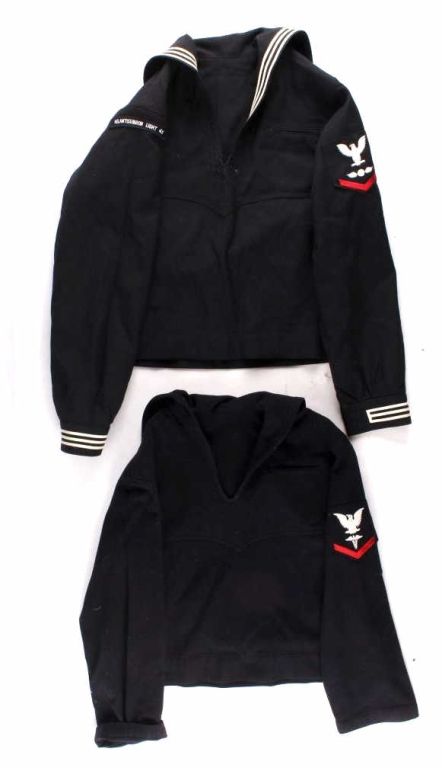 The lot features two original United States Navy Uniforms from the Vietnam War and Korean War. The first uniform is an Aviation Electrician Mate and the other is a Pharmacist. Both show great condition.