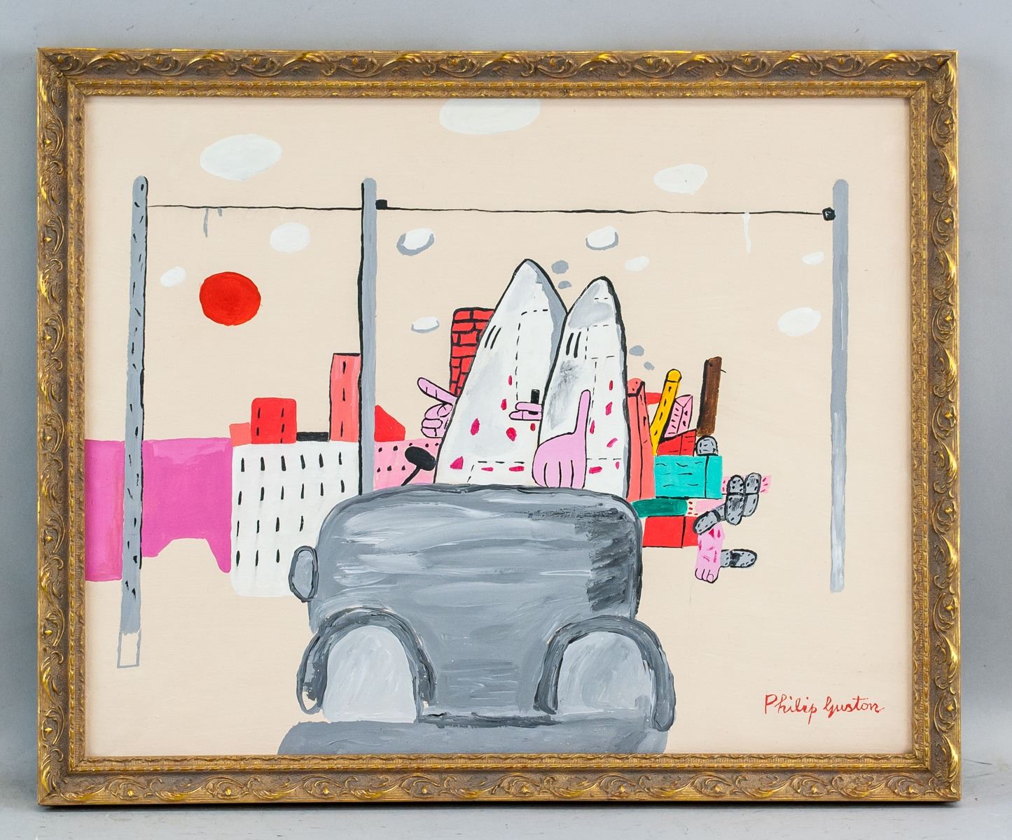 Oil on canvas, stretched and framed. Featuring a landscape scene. Signed Philip Guston on the lower right corner. 37 x 46.5 cm (14.6 x 18.3 inches). PROVENANCE: Southern Ontario estate