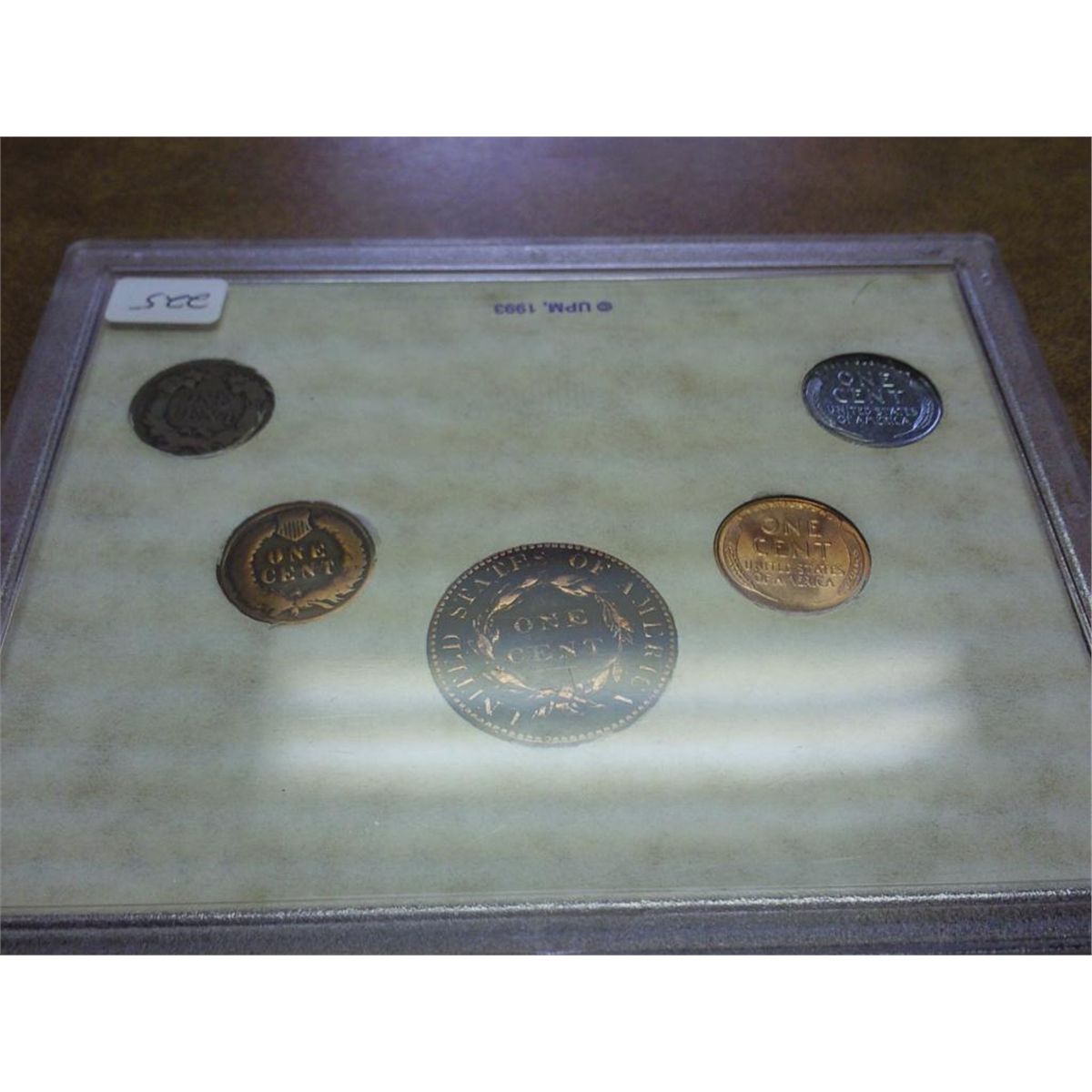 1857 FLYING EAGLE CENT, 1893 INDIAN HEAD CENT, 1822 US LARGE CENT, 1943 LINCOLN CENT (UNC), 1958-D LINCOLN CENT (UNC)
