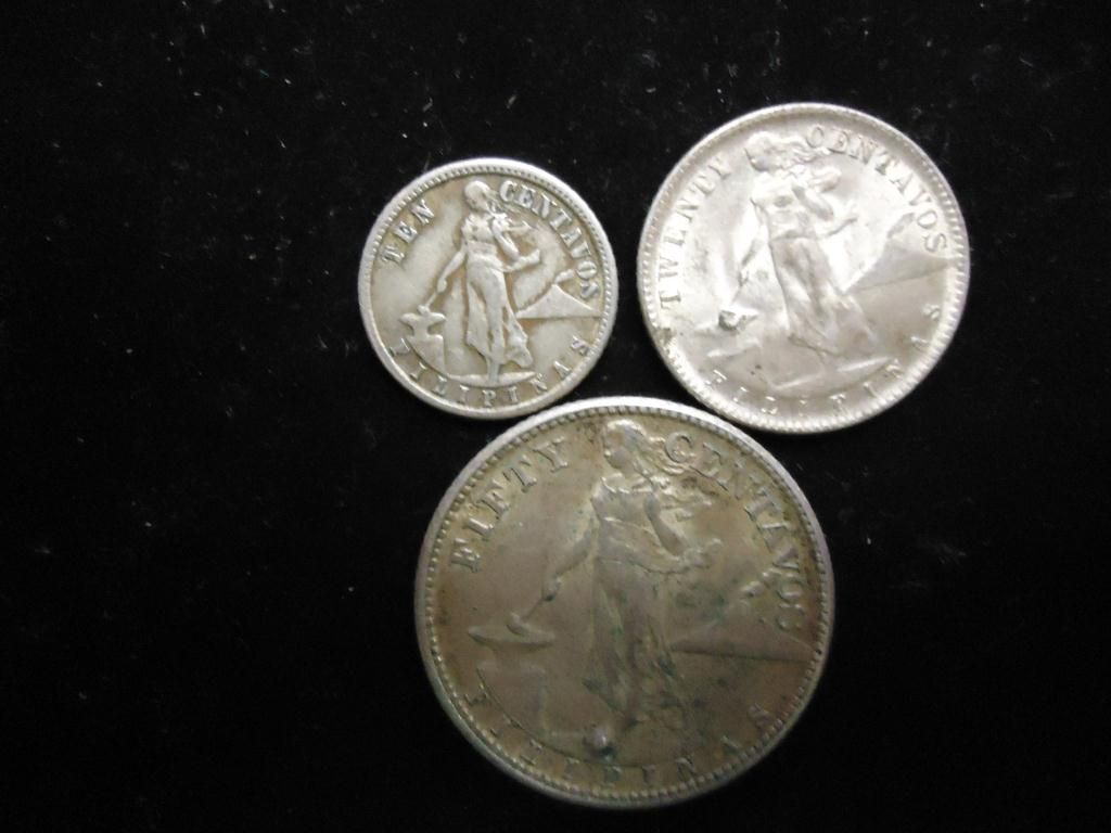 CENTAVOS ALL SILVER, THE 50 CENTAVOS IS PARTIALLY (HOLED)