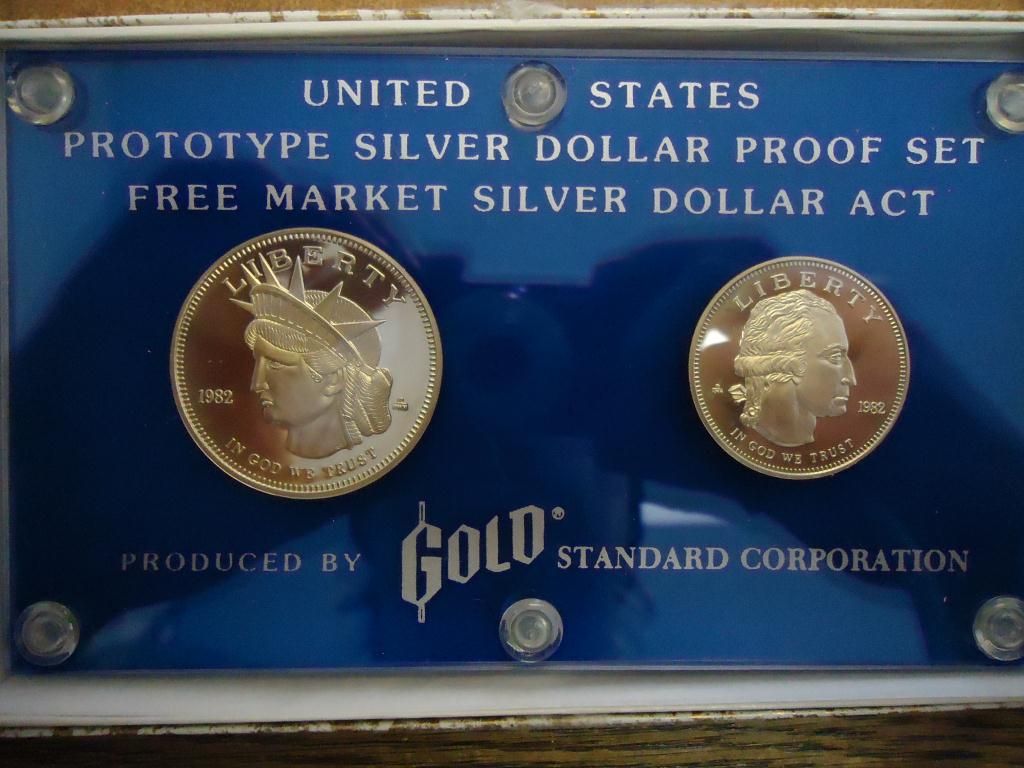 IN CAPITAL PLASTICS HOLDER, "FREE MARKET SILVER DOLLAR ACT" PRODUCED BY GOLD STANDARD CORPORATION