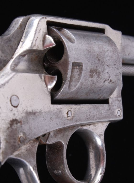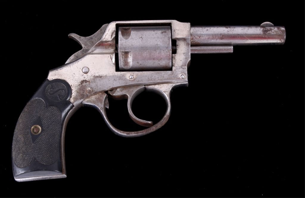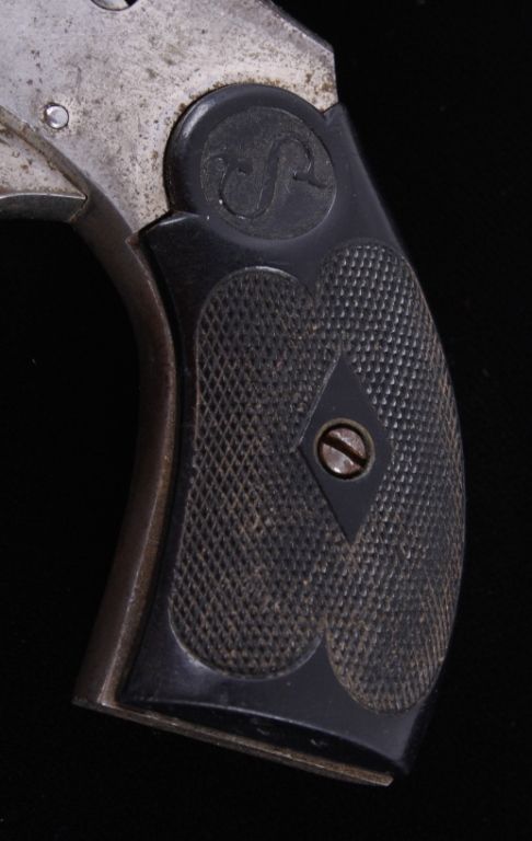 This is a U.S. Pistol Company double action  .32 S&W caliber revolver with 1.75" barrel.  The piece shows a nickel finish and black  grips with the scroll "S". This is a serial  number 142, manufactured from 1880-1898 (very low serial numbers). The US Pistol Company  was created by Otis A. Smith and was closed  by 1899 (not affiliated with US Revolver  Co.). This piece appears to function and  shows overall good condition. NO FFL.