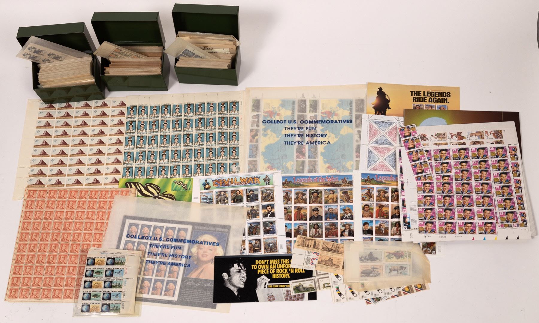 Large collection of US plate blocks, perhaps 300-400 plus booklet panes. Lot also includes several commemorative sheets where the collector assembled sheets with identical 5 digit serial numbers such as 11111 or 22222. The plate blocks date from generally the late 20s- perhaps the 1960s plus the more modern commemorative sheets. The group includes regular issues as well as commemoratives. City: State: Date:
