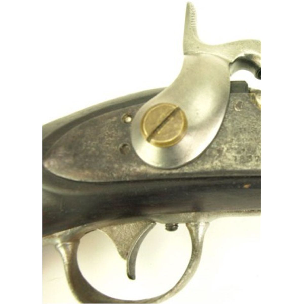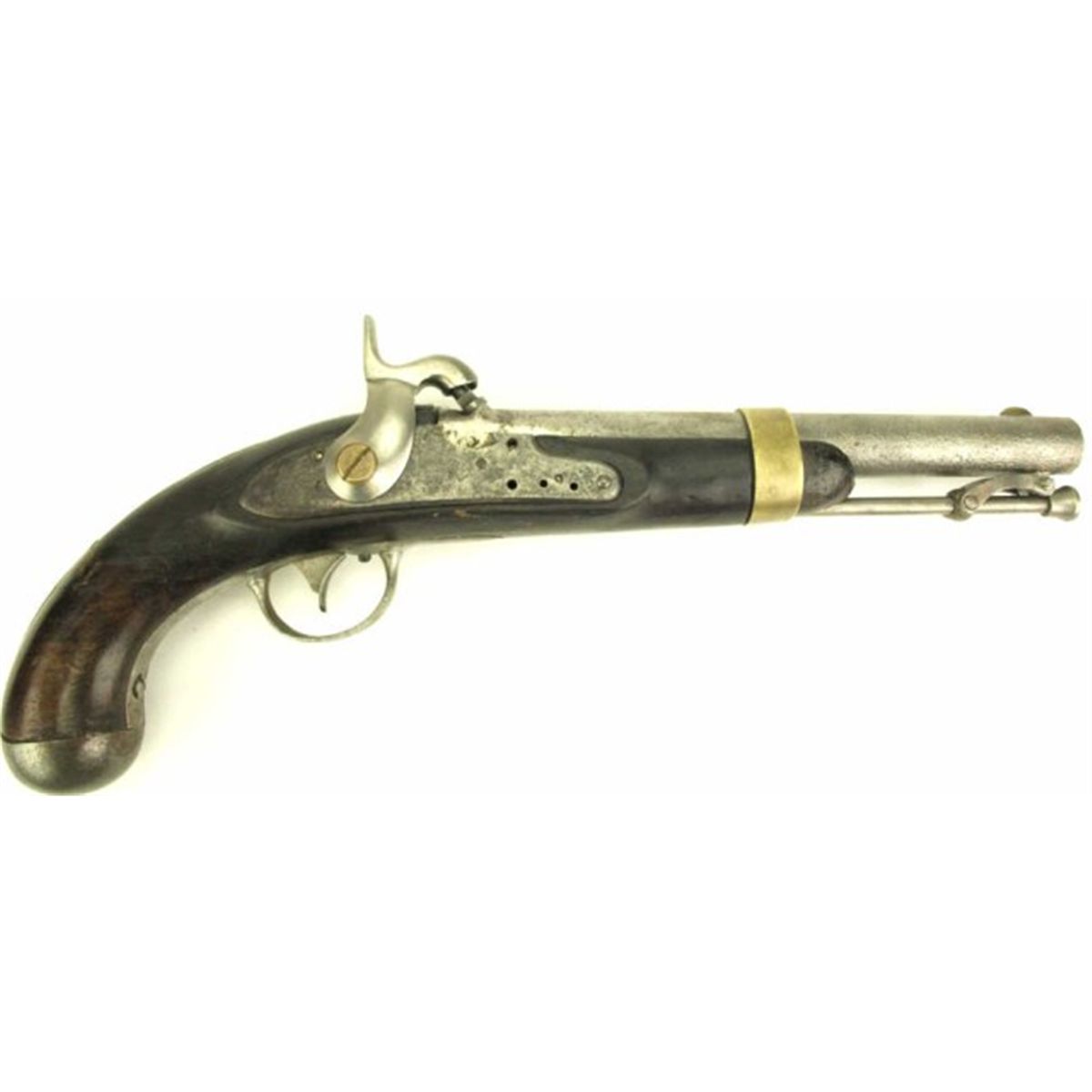 US R. Johnson conversion 54 cal pistol 8 1/2" barrel and walnut stock. Lock plate marked US R. Johnson 1837. Barrel, lock and trigger guard show moderate pitting having been cleaned to silver, walnut stock good with no chips, cracks or repairs, NO FFL r