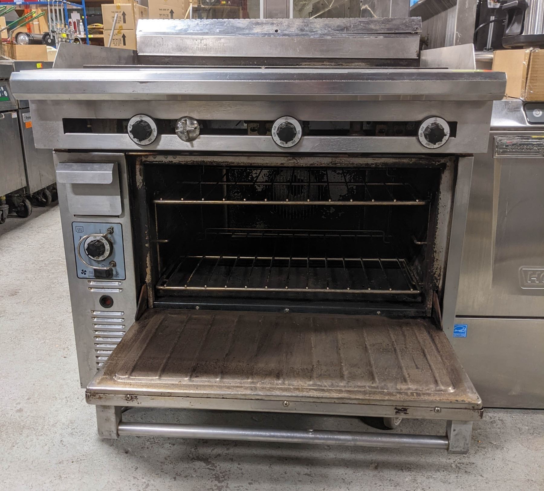 BY GARLAND. MODEL: C836. REPLACEMENT VALUE $10,000+ ,THERMOSTATIC CONTROLS, NATURAL GAS, 115V FAN MOTOR. *TESTED AND WORKING. ON CASTERS