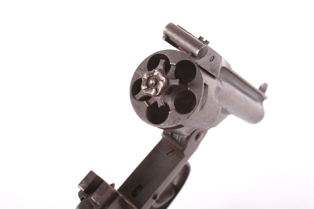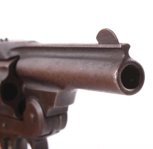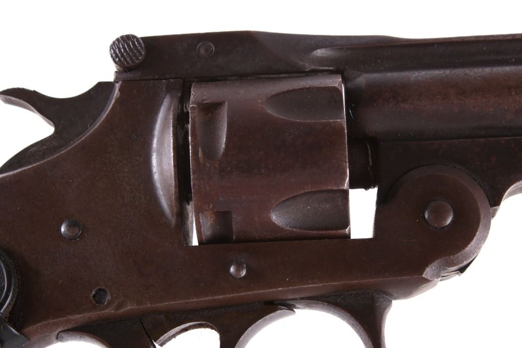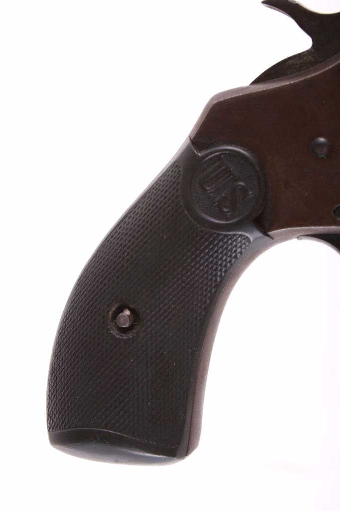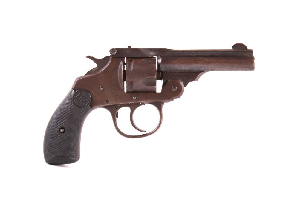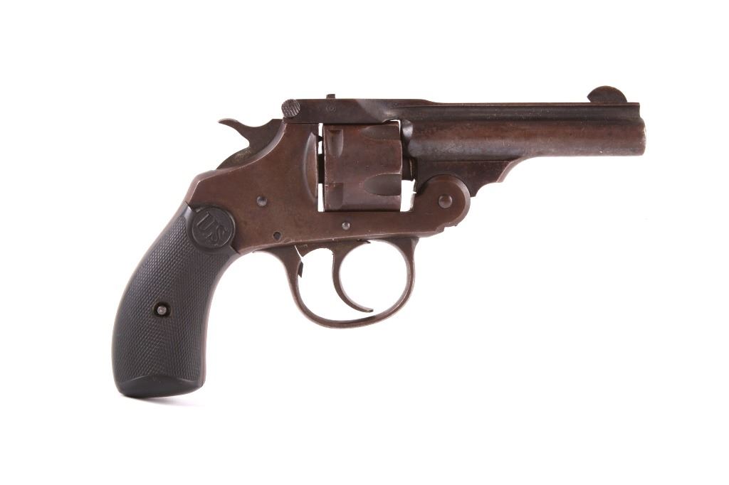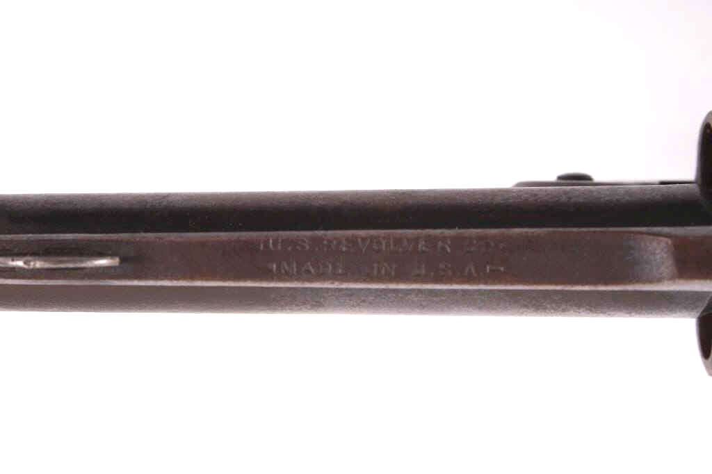 This lot contains a U.S. Revolver Co .32 Caliber Double action Revolver. The revolver features a factory original blued frame with finish loss, 5-shot cylinder and round 3" solid rib barrel with hard rubber grips. The barrel rib is marked "U.S. Revolver Co. Made in U.S.A.". The revolver is in very good condition for its age. It measures 3.75" x 6.5". Serial number is A34245. This firearm requires a Curio & Relic FFL, an FFL Transfer or a NICS Background Check.