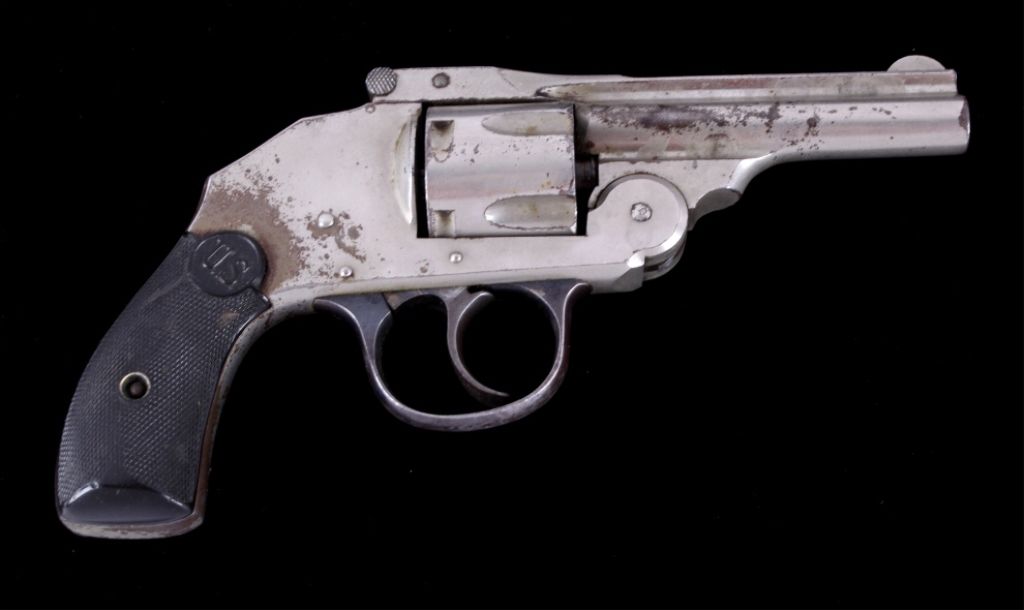 This is a U.S. Revolver Company .38 S&W Hammerless break over 5 shot double action revolver. This piece is in a nickel finish with the black US grips. Serial numbers 14622, manufactured from 1910-1920. Firearm does appear to function.
