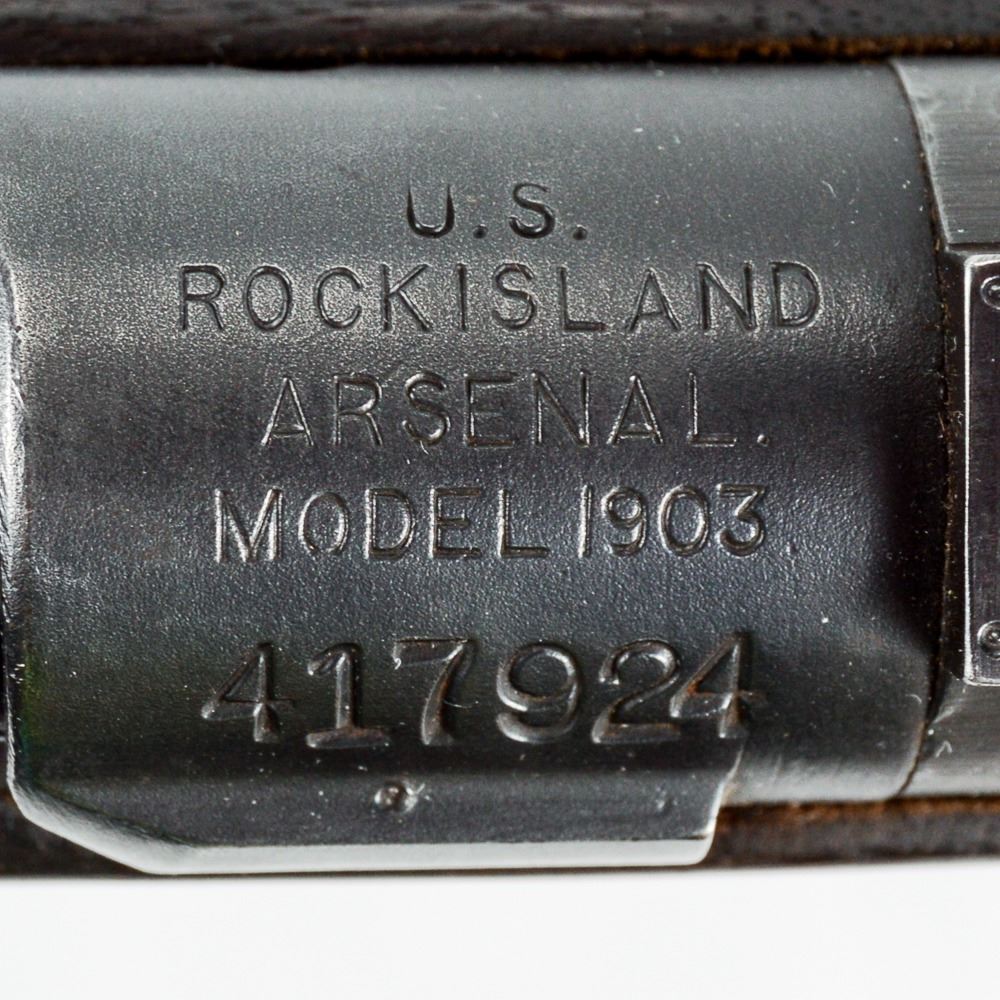 U.S. Rock Island Arsenal Model #1903 cal.30/06 24" barrel marked R.I.A.12-18, flaming bomb, excellent bore, turn down bolt marked N.S., proof marks on stock behind trigger guard C&R Eligible S/N: 417924