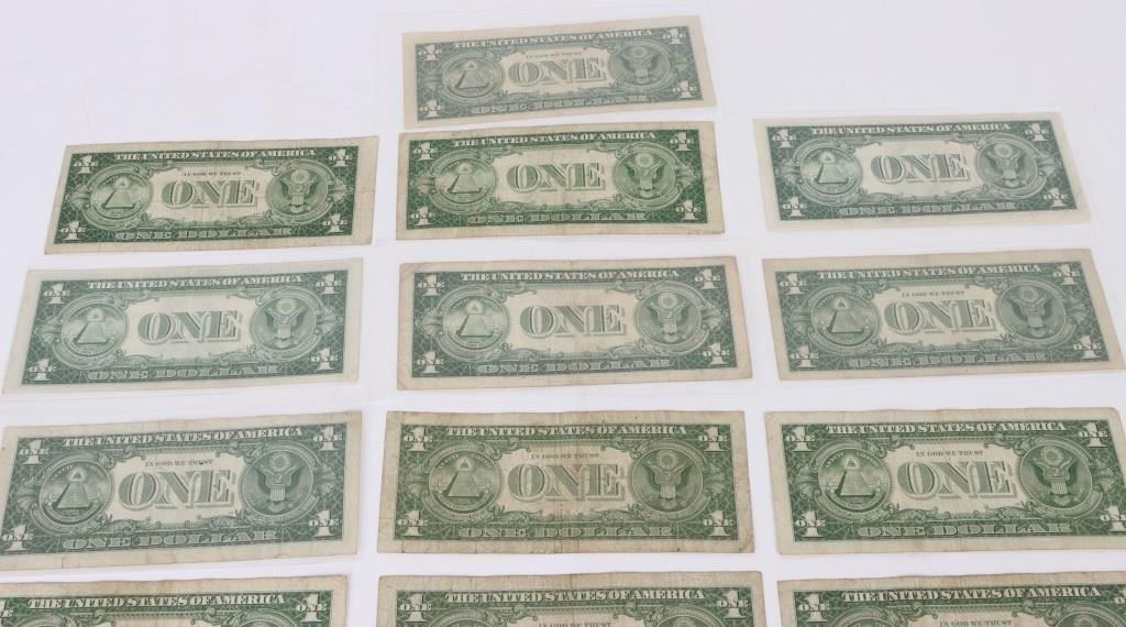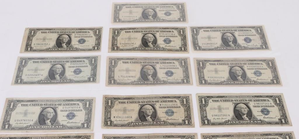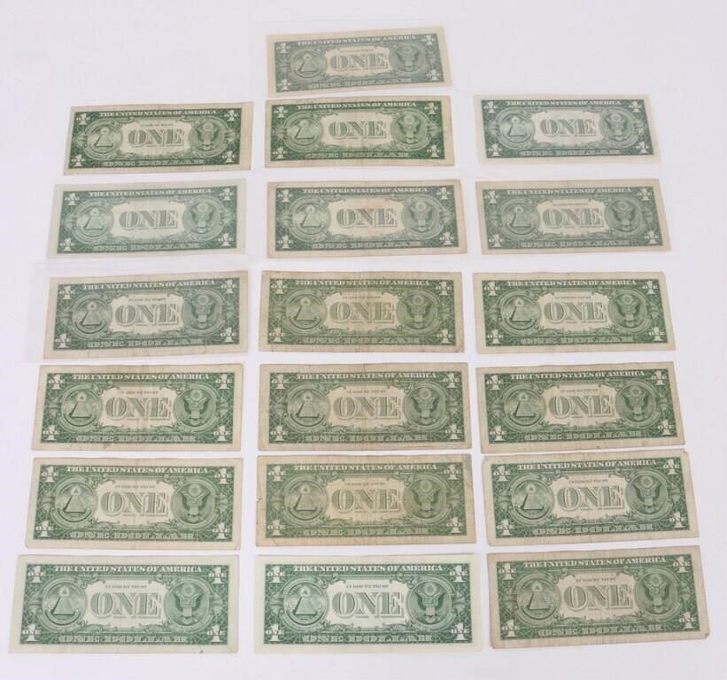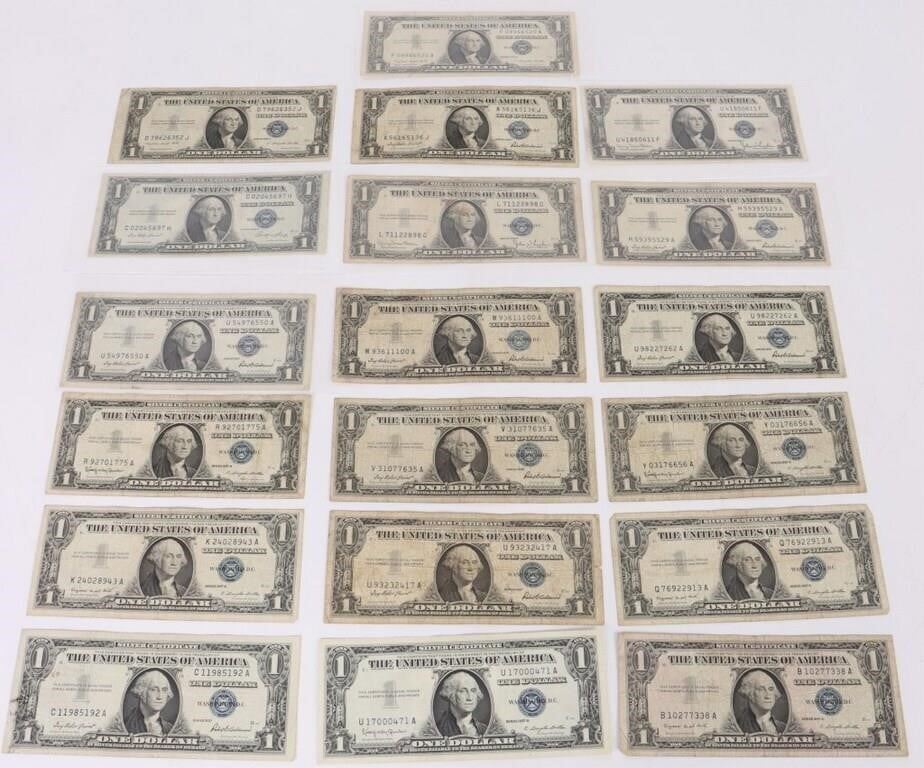United States silver certificates $1 bills - lot of 19. Bills range in date 1935-1937 A-E.