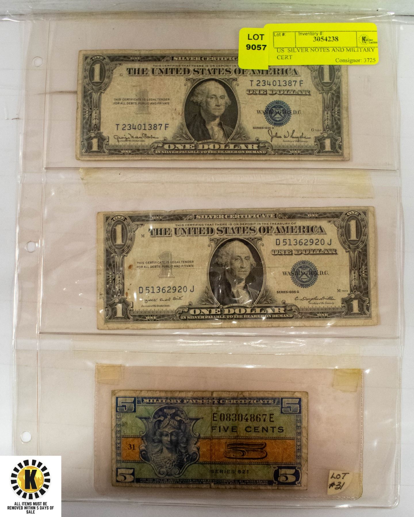 US SILVER NOTES AND MILITARY CERTIFICATE