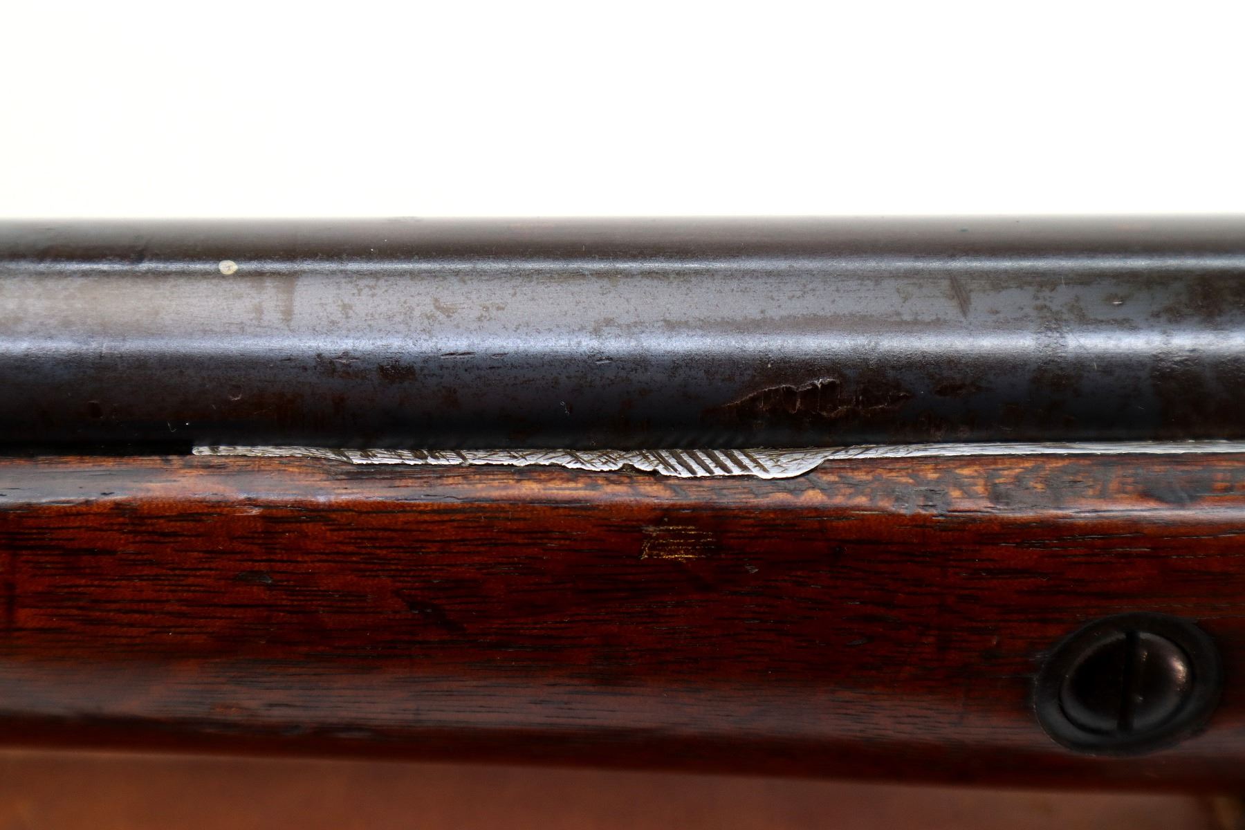 Wear: Metal finish shows some light rust speckles, scratches, handling marks and wear. Stock shows marks, scratches and wear.