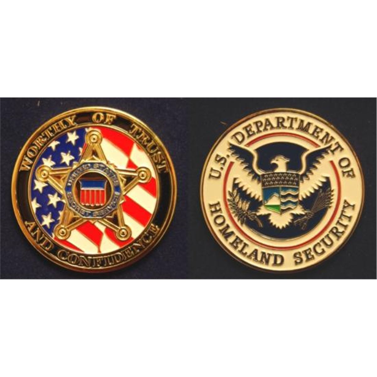 us secret service coin - 1.75in in diameter and 22kt gold plated solid bronze. There is the USSS Seal with their motto on the front and the Special Agent Badge in 3D on the back in exact detail. MWF1932