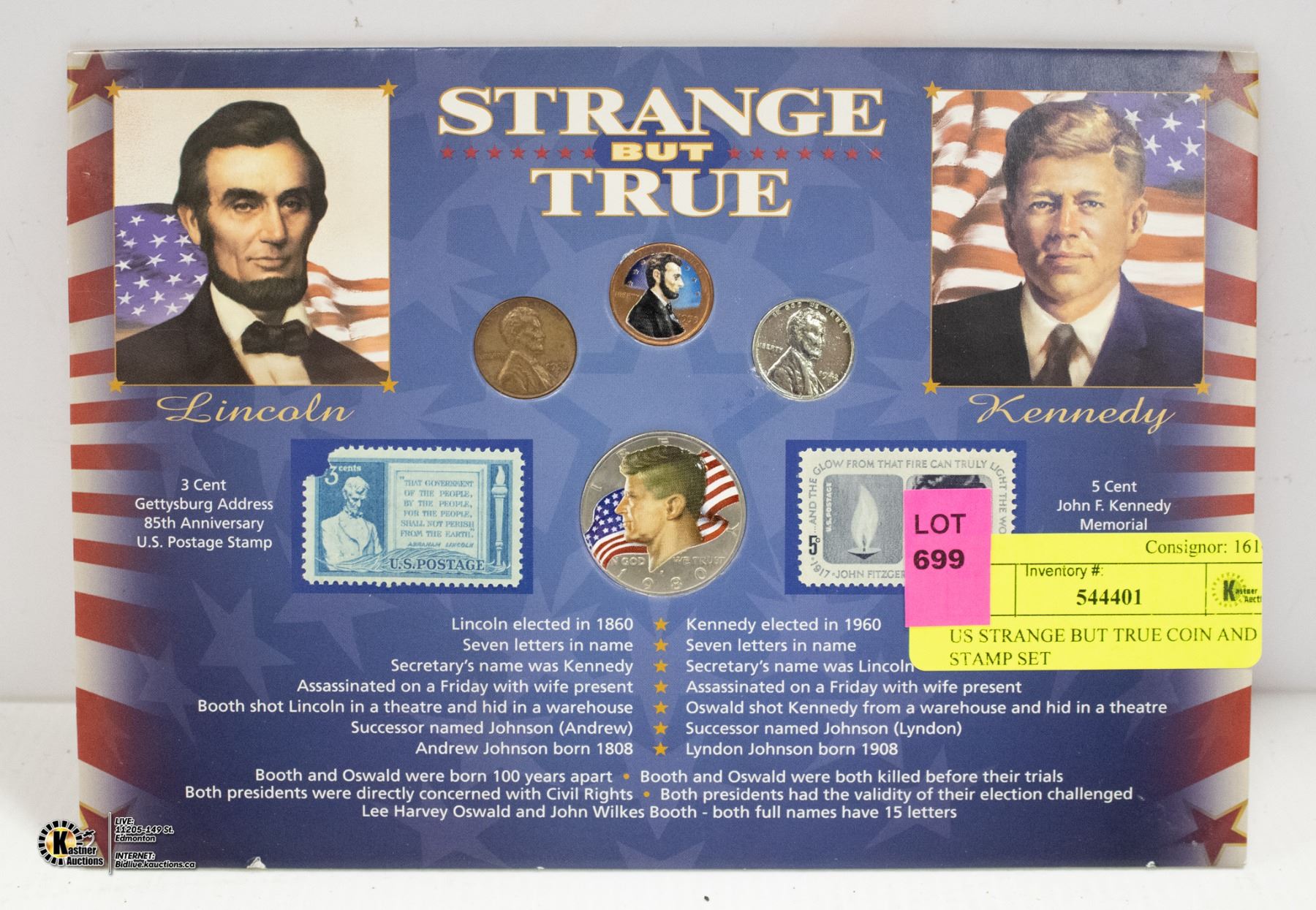 US STRANGE BUT TRUE COIN AND STAMP SET