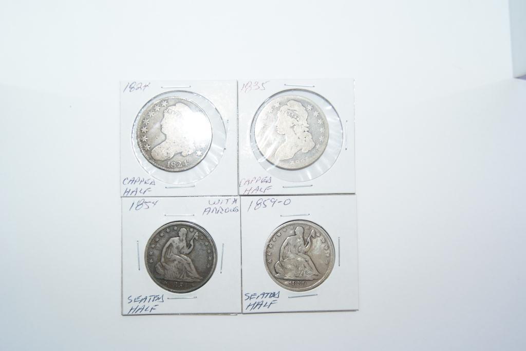 (2) US Seated Halves, 1854 with Arrows and 1859-O (2) US Capped Halves 1824 and 1835 Sold Times the Money