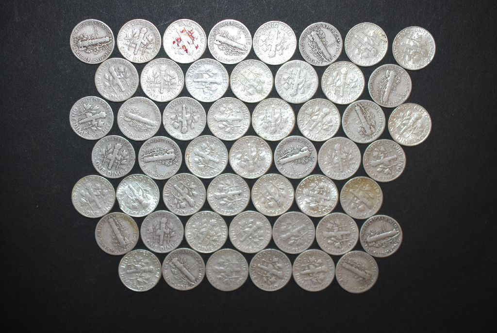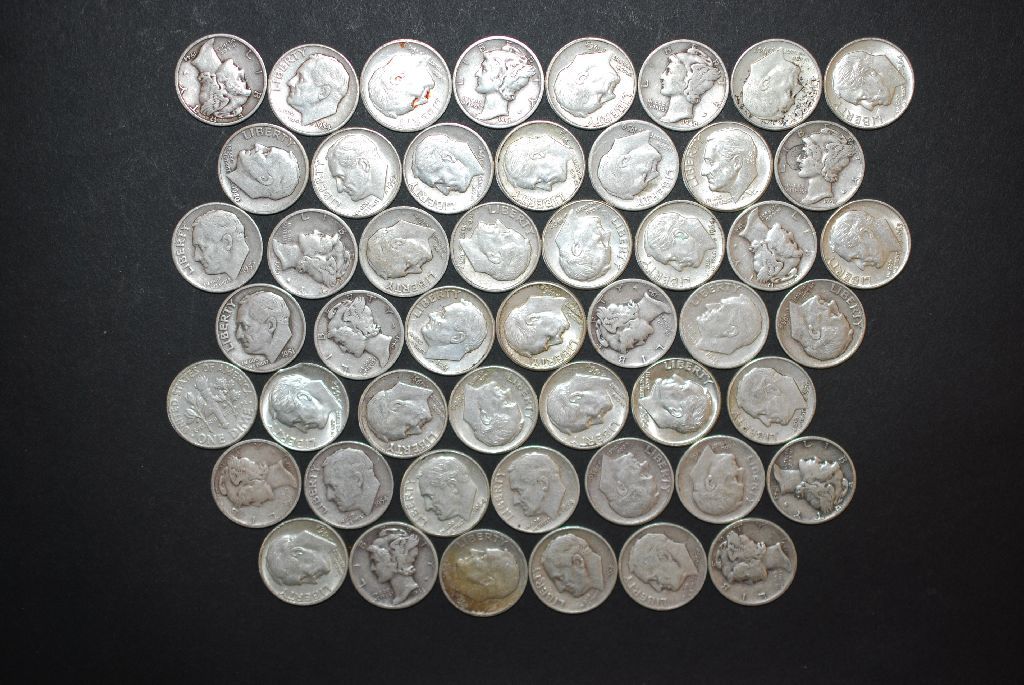 US Silver Dimes $5.00 Face Value; Various Dates & Conditions; Lot of 50; EST. $125-150