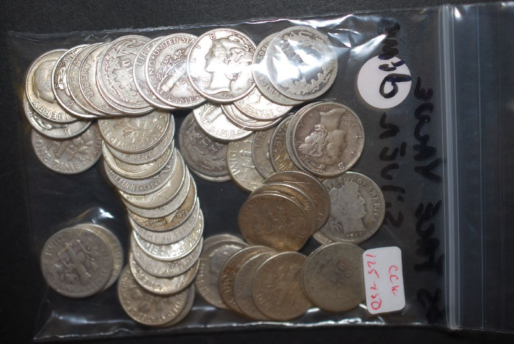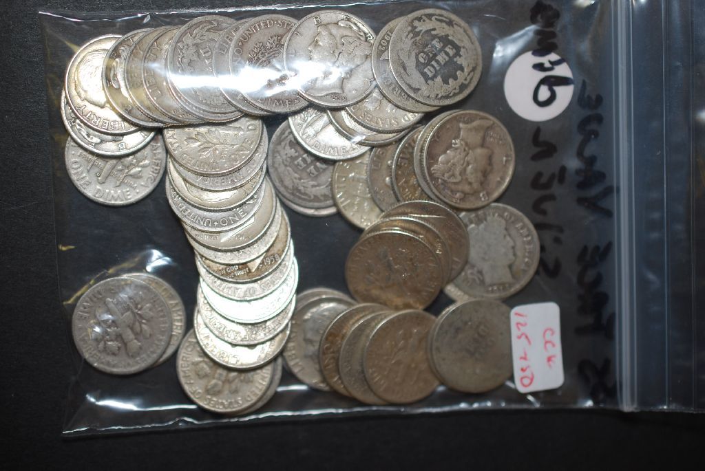 US Silver Dimes $5 Face Value; Various Dates, Conditions & Mint Marks; Lot of 50; EST. $125-150