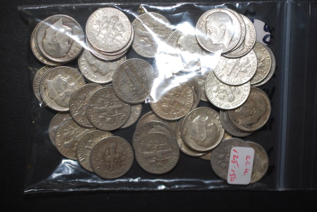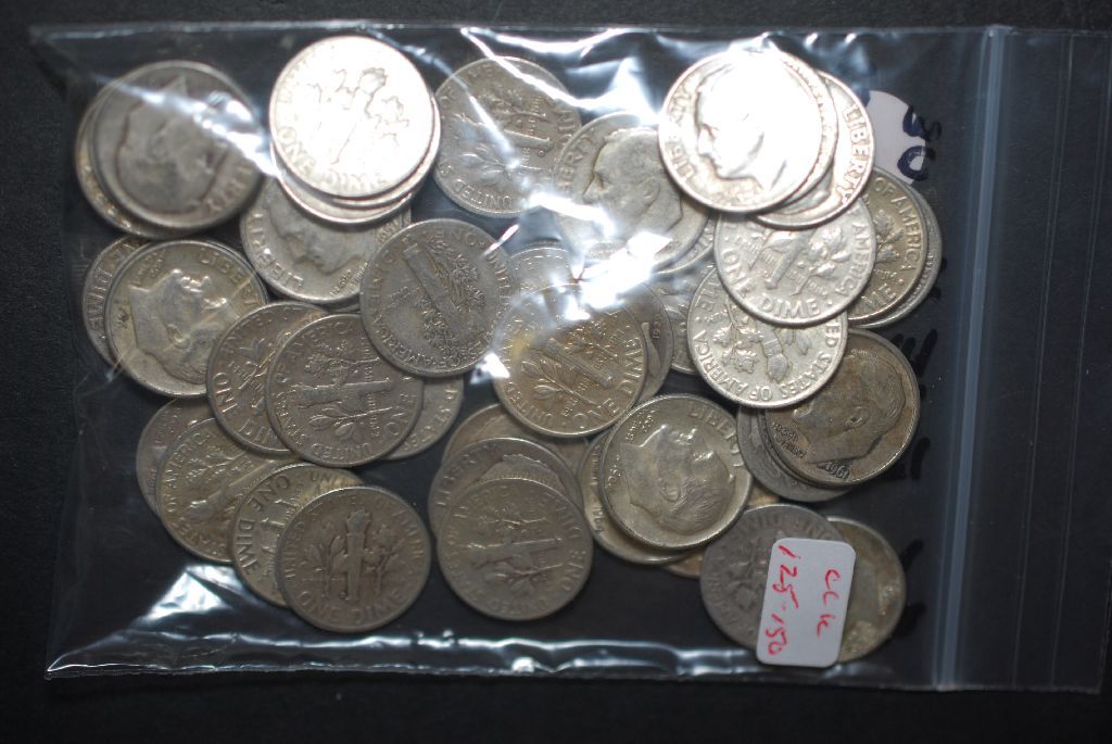 US Silver Dimes $5 Face Value; Various Dates, Conditions & Mint Marks; Lot of 50; EST. $125-150