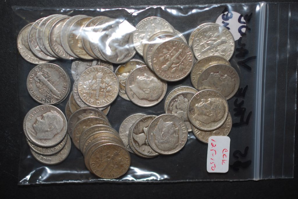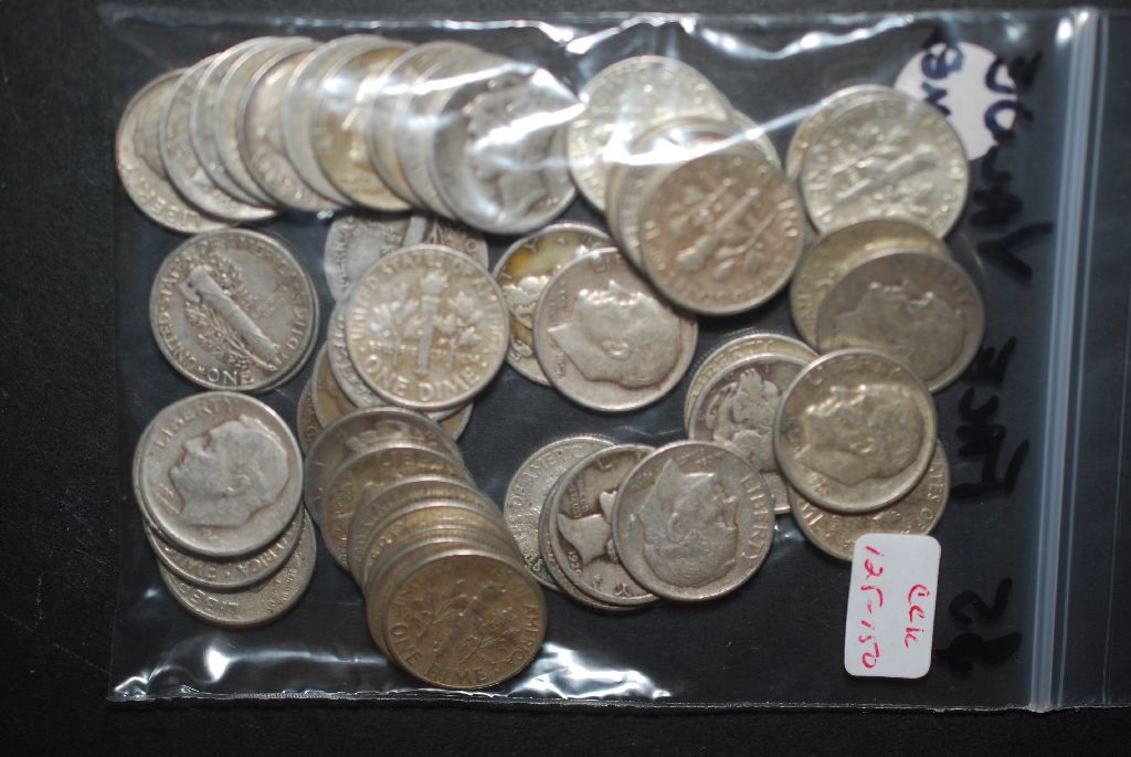 US Silver Dimes $5 Face Value; Various Dates, Conditions & Mint Marks; Lot of 50; EST. $125-150
